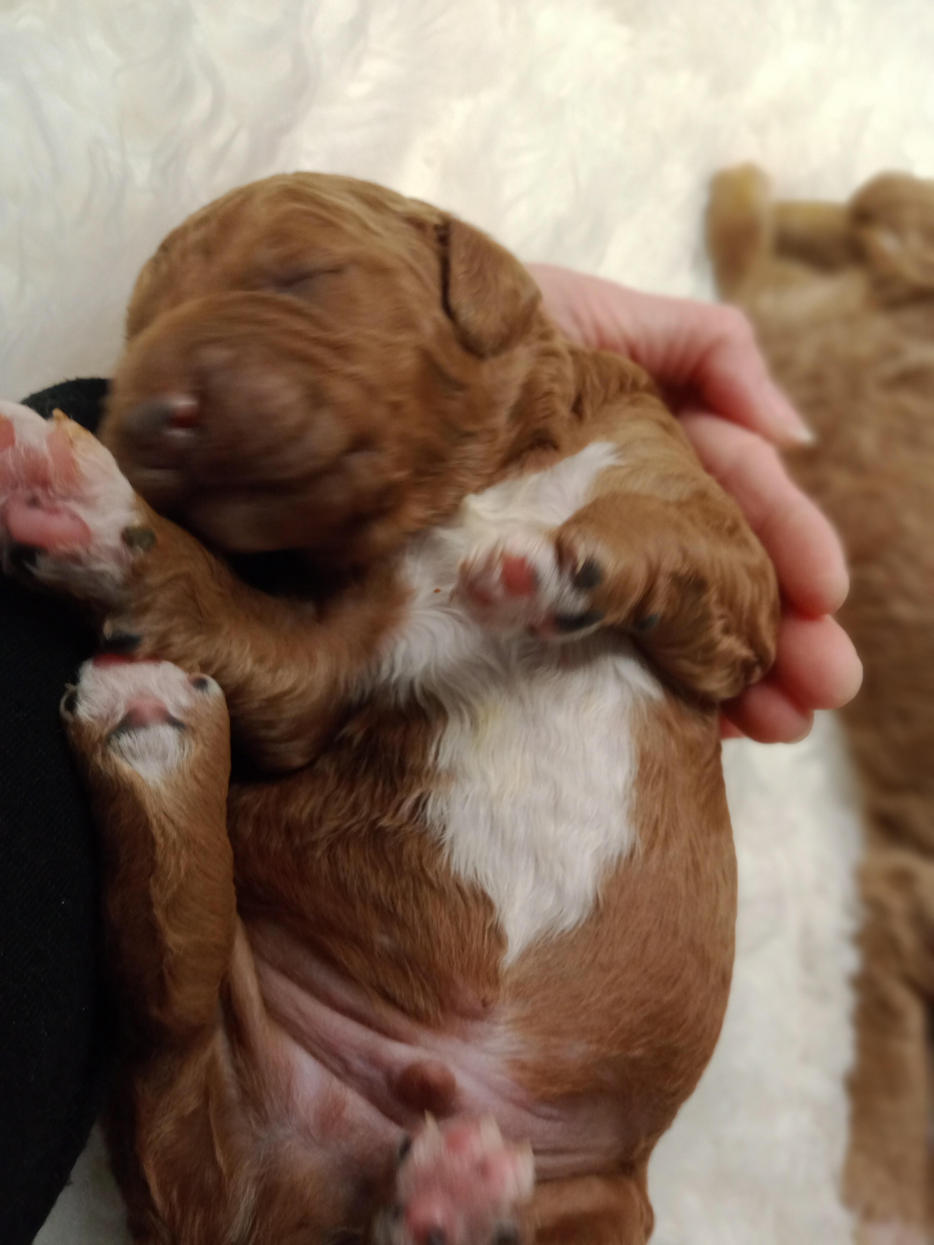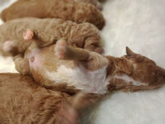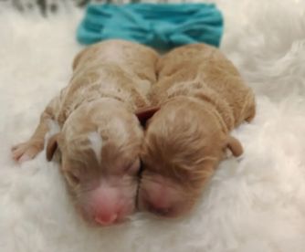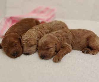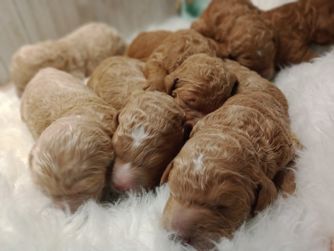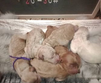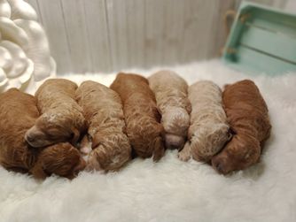 Our Poodle puppies include apricot, cream, red, and parti. Colors will vary depending on the parent dogs.