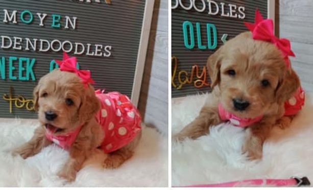 Our Poodle puppies include miniature and standard sizes. Goldendoodle puppies include miniature, medium, and standard sizes. Sizes will vary depending on the parent dogs.