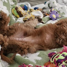 Mellow sweet girl, best temperament and great health! She loves to play, but what she loves even more is sleeping or cuddling beside you. She absolutely lives for human approval and attention. Submissive and very sweet, alot like retrievers are:)