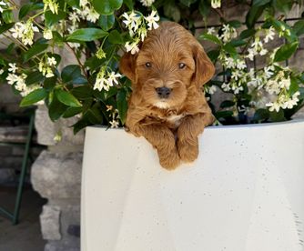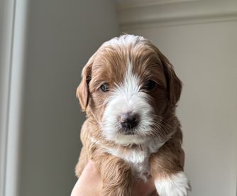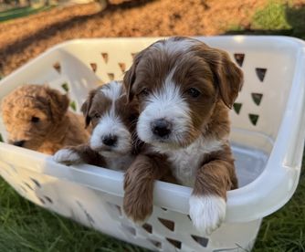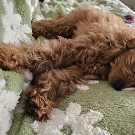 We love our pup so much- we named him Lego. Our kids are so happy for Santa’s Xmas gift this year. I will say, from day one our puppy loved the crate, isn’t territorial, doesn’t bat an eye when our young kids are screaming or whining, and is happy/healthy as they come! I think Marina and her family of five kids helped socialize him in all the ways when it comes to kids (our pup even runs towards the sound of basketball and kid cries) and gets them used to a crate immediately. I also love that these pups came from the love of their own family dog, Legos mommy. We are over the moon with getting Lego from Marina at Doodles Delight PNW. Fantastic experience.
