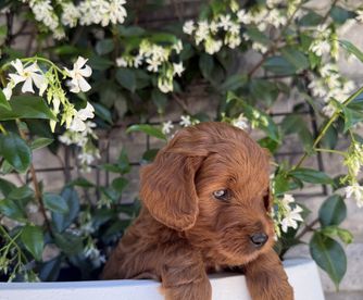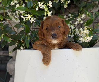 Our puppies include apricot and red. Colors will vary depending on the parent dogs.