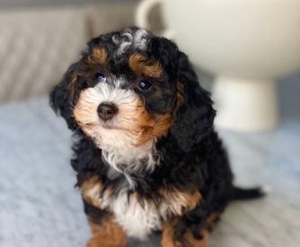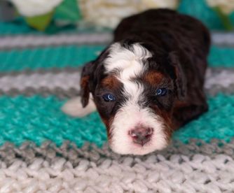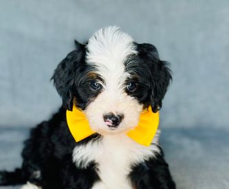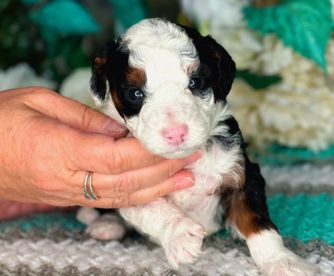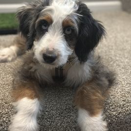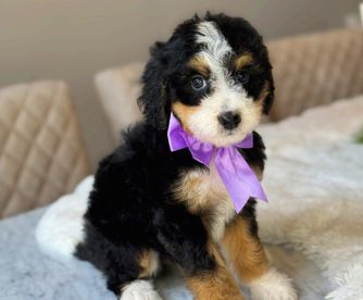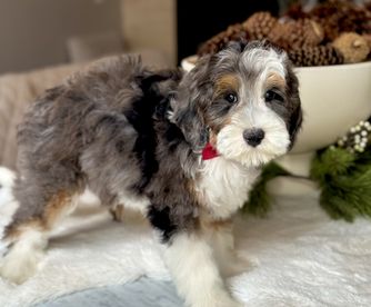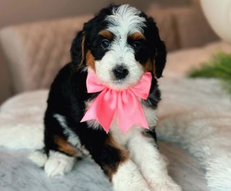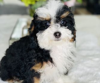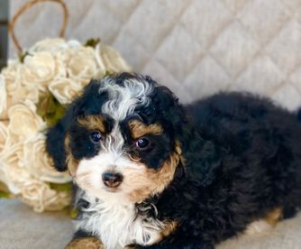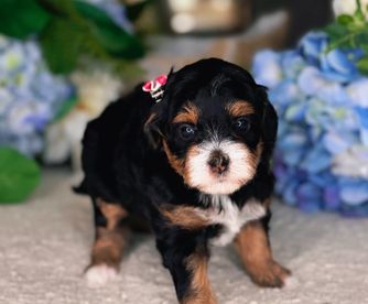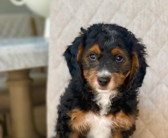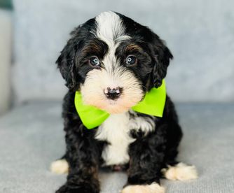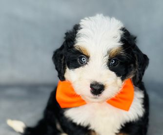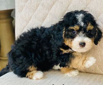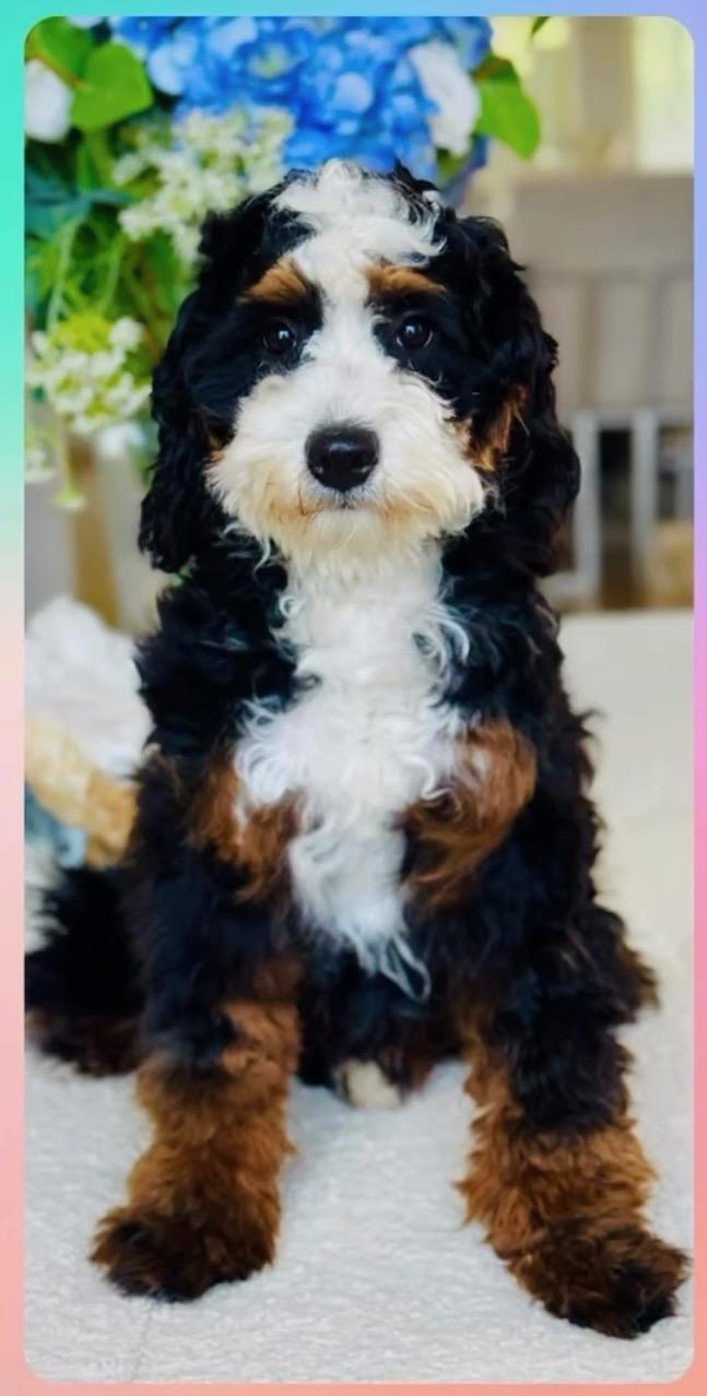 Our Bernedoodle puppies are tri-color. Colors will vary depending on the parent dogs.