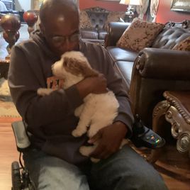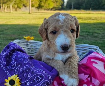 Macy is a health and OFA tested and passed, CKC registered, standard F1b Goldendoodle (65 lbs). Her structure and temperament are phenomenal. (Pics of parents attached). She is a country gal residing with Jeremy in his home. She also enjoys free range out on his property. Jeremy is wheelchair bound and claims Macy is the best dog he’s ever had. She was very easy for Jeremy to train and makes the perfect companion for him.