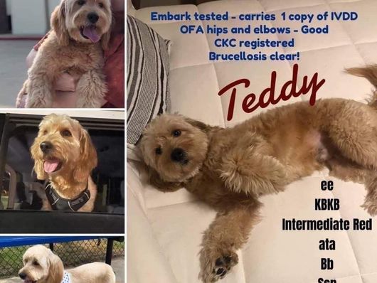 Teddy is a male Goldendoodle. Carefully selected as a great representative of his breed, Whitney decided to make him part of their program. Whitney has passed Good Dog’s screening process, which involved a review of their breeding practices, environment, and the mental and physical health of their dogs.