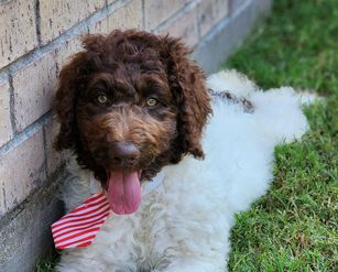 mom is multi generation Australian Labradoodle and Dad is standard poodle Super smart easy to train and is already potty trained and knows a doggie door. Loves to play swim and cuddle