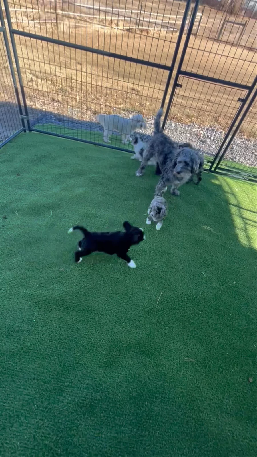 Doggie door time! They love being outside!