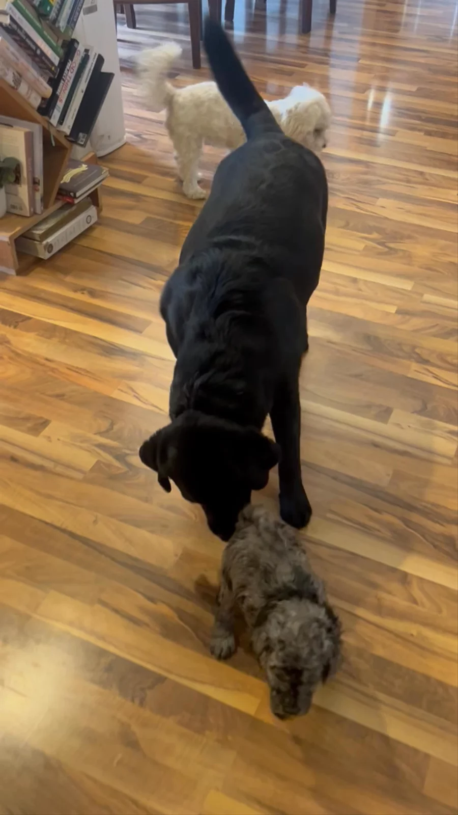 The puppies are loving the other dogs in our house.
