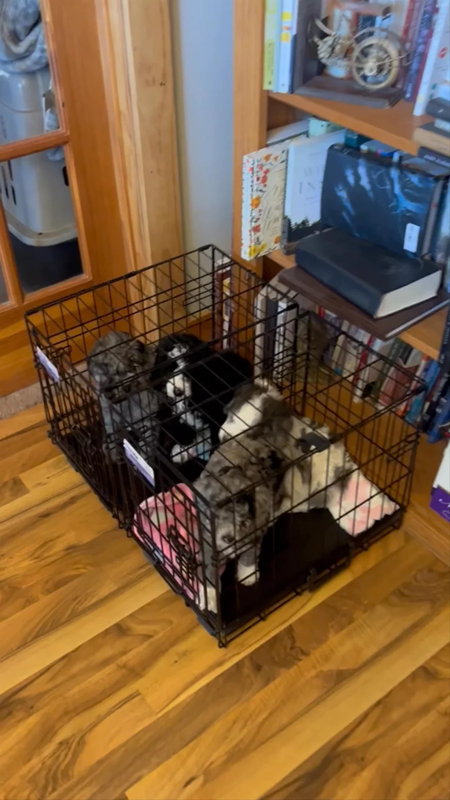 Crate training is going great! Just one more week and change and these babies can go home! Three girls left!