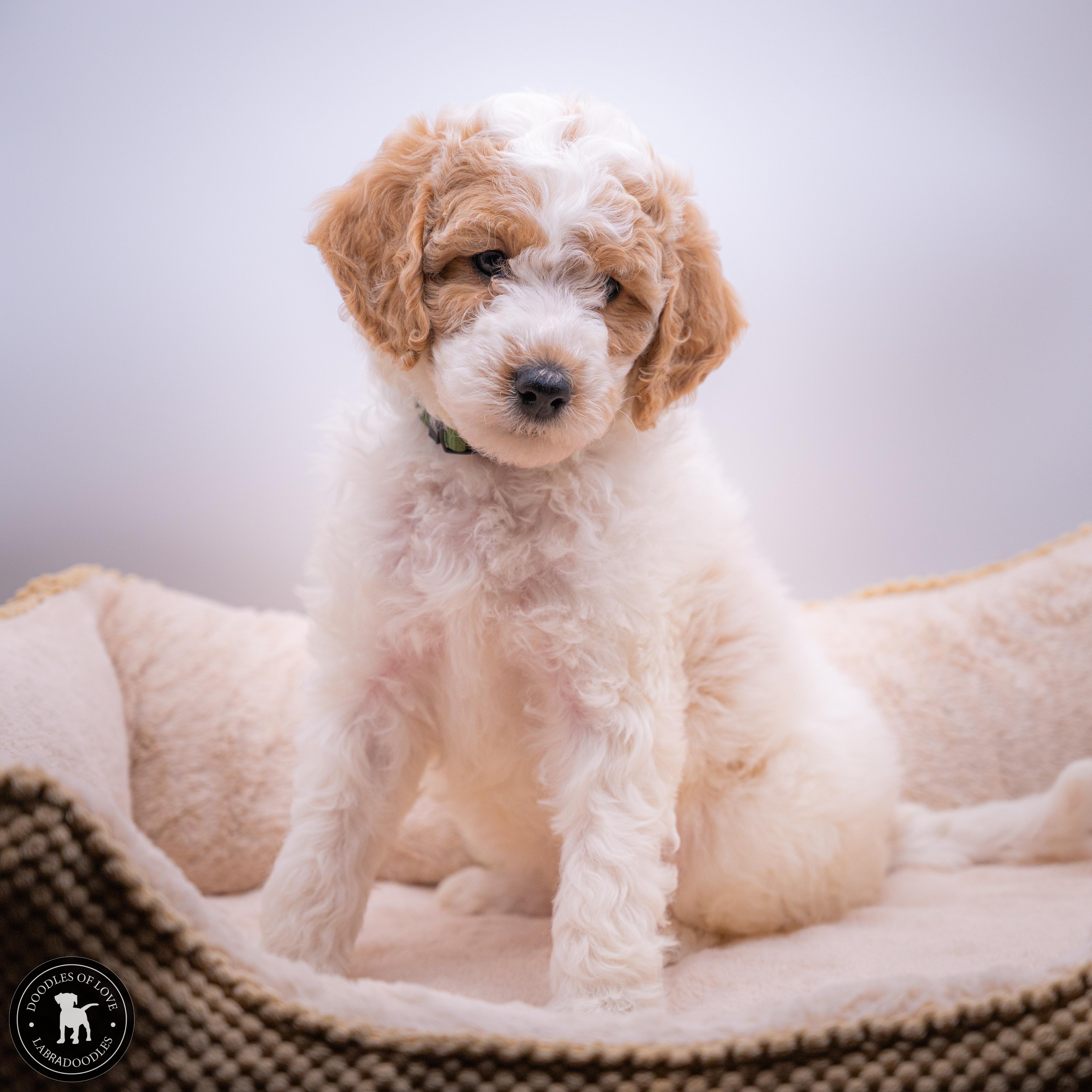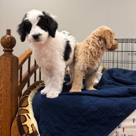 Our Labradoodle puppies include miniature and medium sizes. Bernedoodle puppies include mini and medium sizes. Sizes will vary depending on the parent dogs.