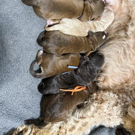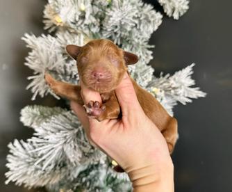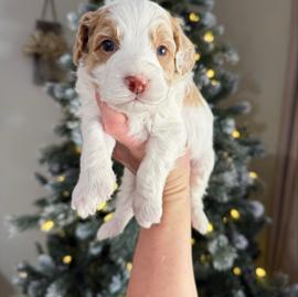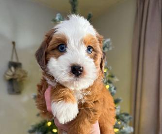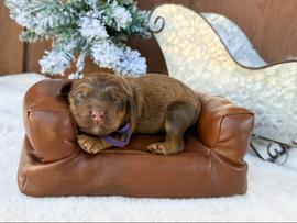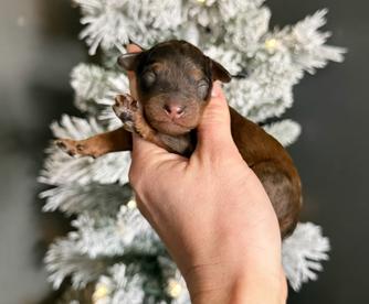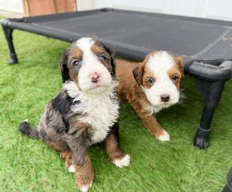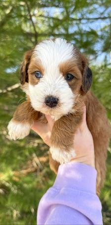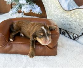 Our Bernedoodle puppies include sable, black and white, tri-color, phantom, and merle. Cavapoo puppies include merle, sable, tri-color, red, chocolate, blenheim, black and tan, and apricot. Dachshund puppies include piebald, chocolate, chocolate and tan, and dapple. Australian Labradoodle puppies include merle, caramel cream, caramel, caramel red, red, apricot, cream, chocolate, black, and tri-color. Colors will vary depending on the parent dogs.