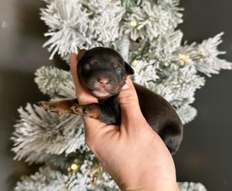 Dachshund puppies have longhaired coats. Coat types may vary depending on the parent dogs.