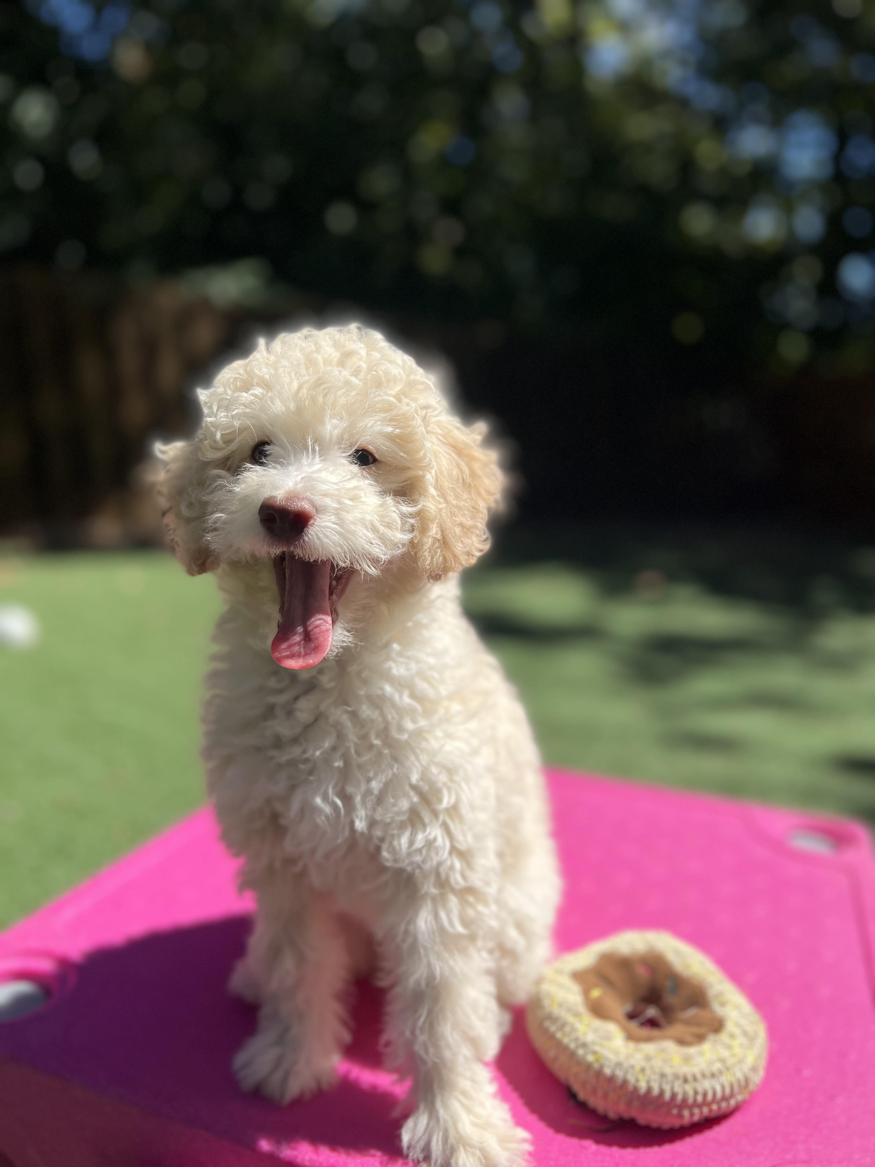 Tybee is a male Poodle almost 5 years old. Carefully selected as a great representative of his breed, Kay decided to make him part of their program. Kay has passed Good Dog’s screening process, which involved a review of their breeding practices, environment, and the mental and physical health of their dogs.
