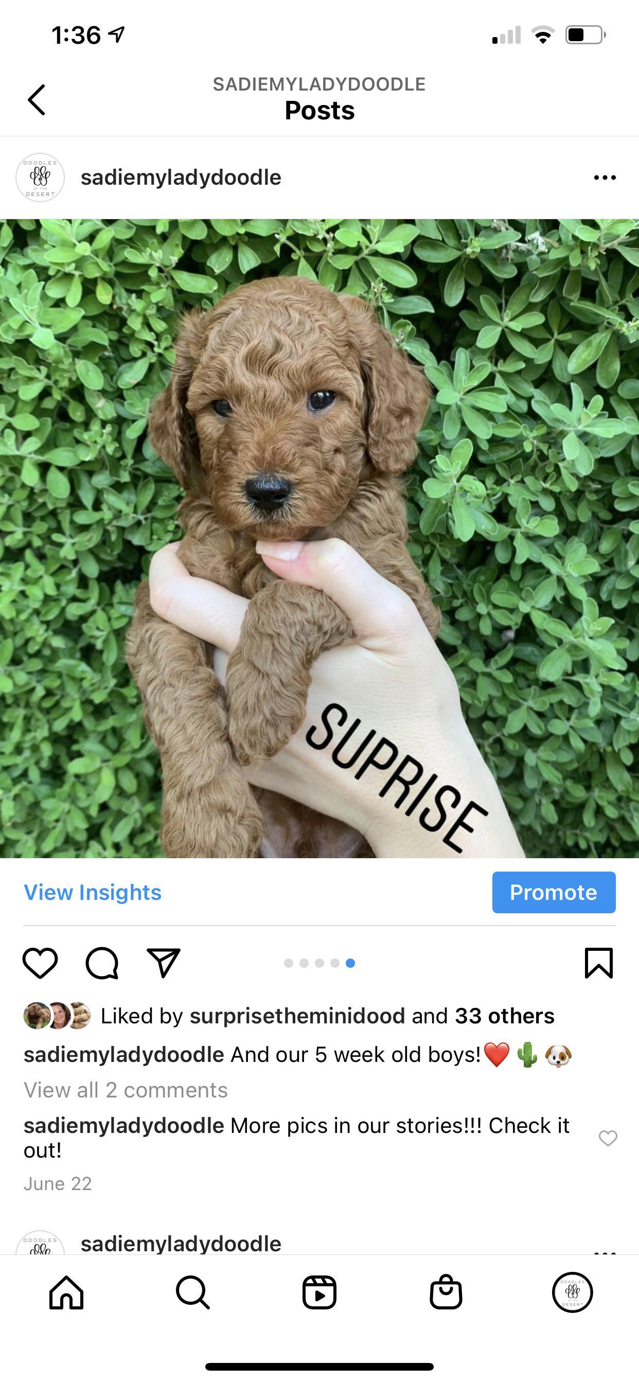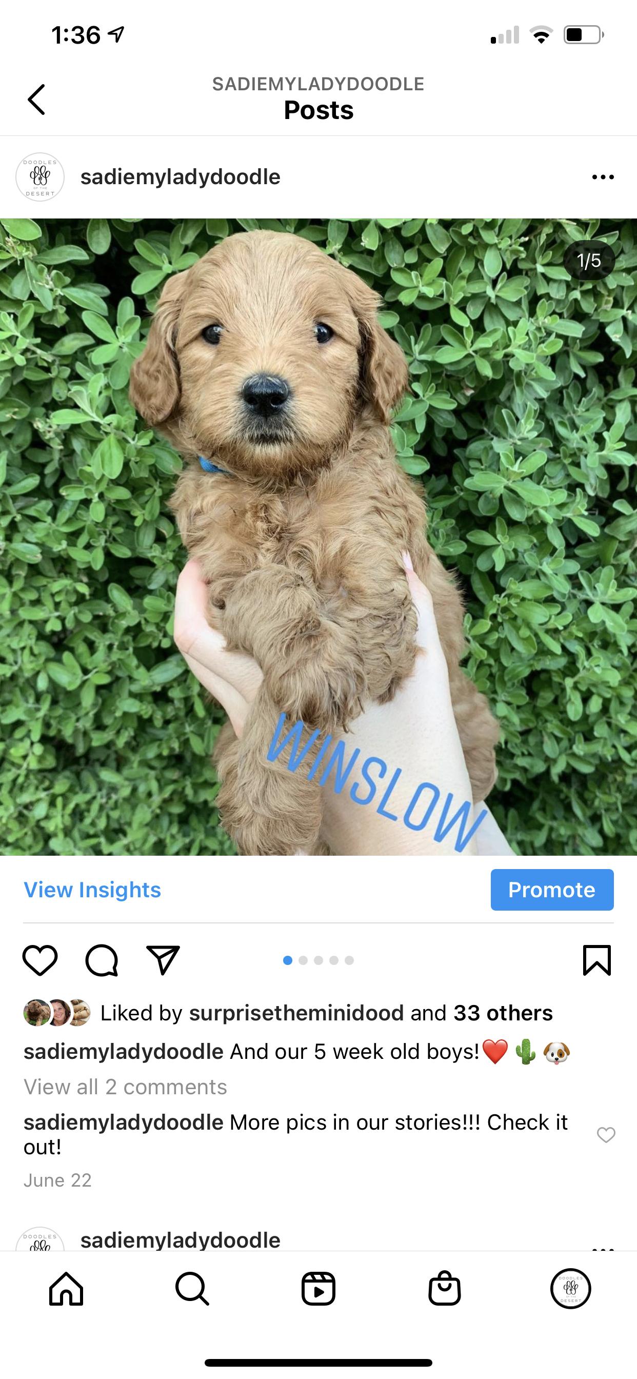 We purchased a golden doodle from Sarah and couldn’t have been happier with the whole process! Sarah is so knowledgeable and so helpful with being there to ask all of the questions we had. We were able to visit the puppies to see which one was best for us and totally fell in love with one. They had already named him Bear and the name was so perfect that we kept it!! He is the sweetest puppy we have ever had. I was very pleasantly surprised with how easy it was to train him in our new home. I truly think it has to do with the care Sarah gives them and all of the things she does to get them ready to go to their new home. I couldn’t recommend her more!! If we ever get another, we will only go through her!