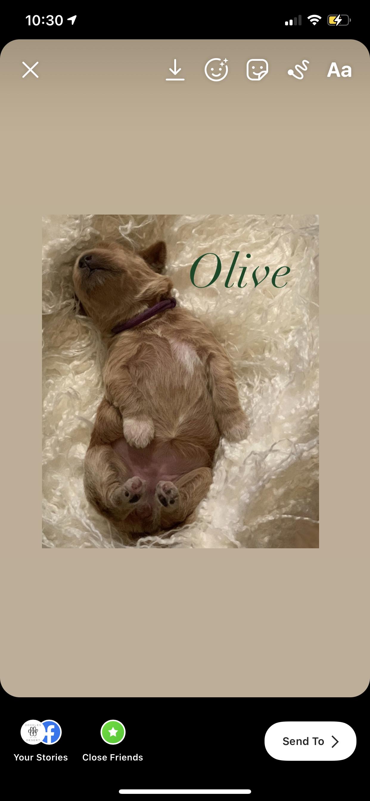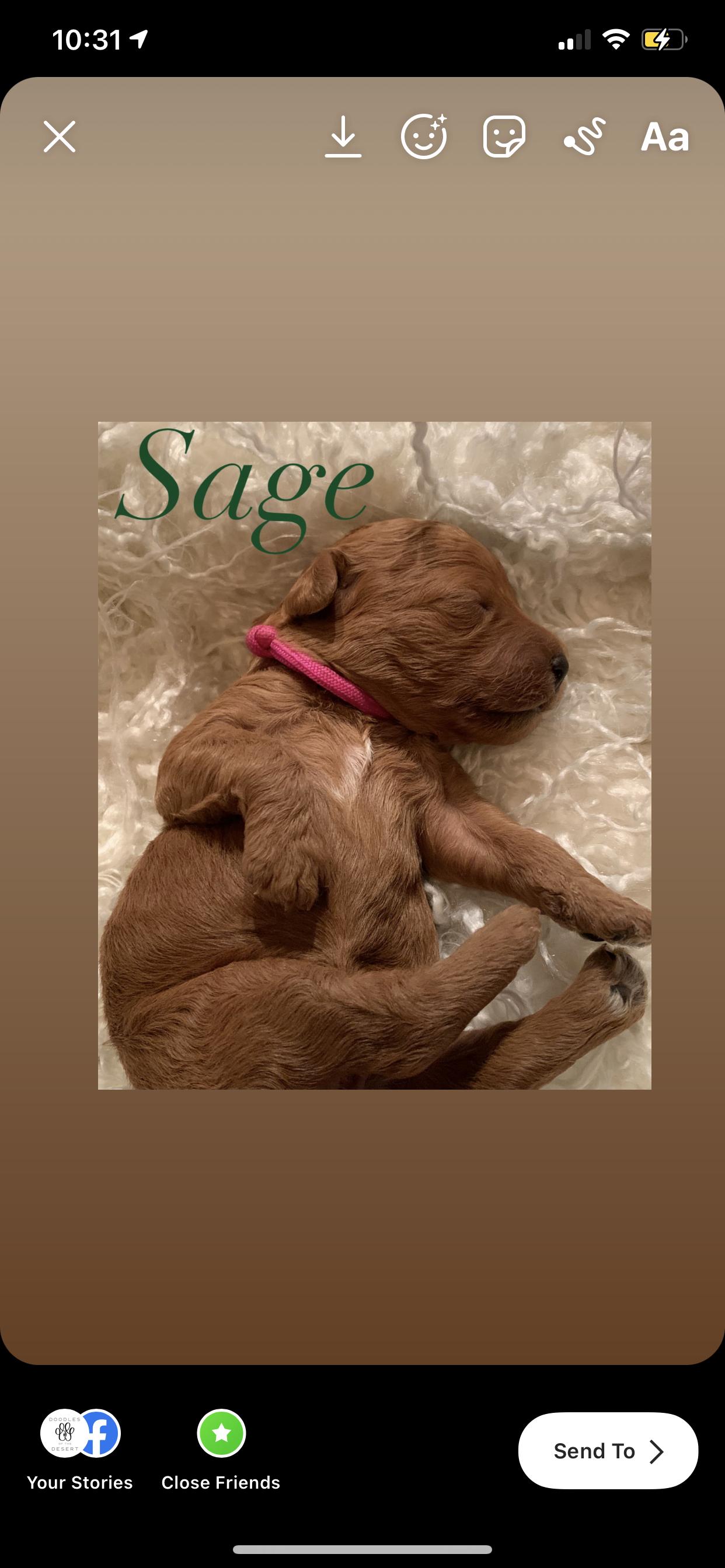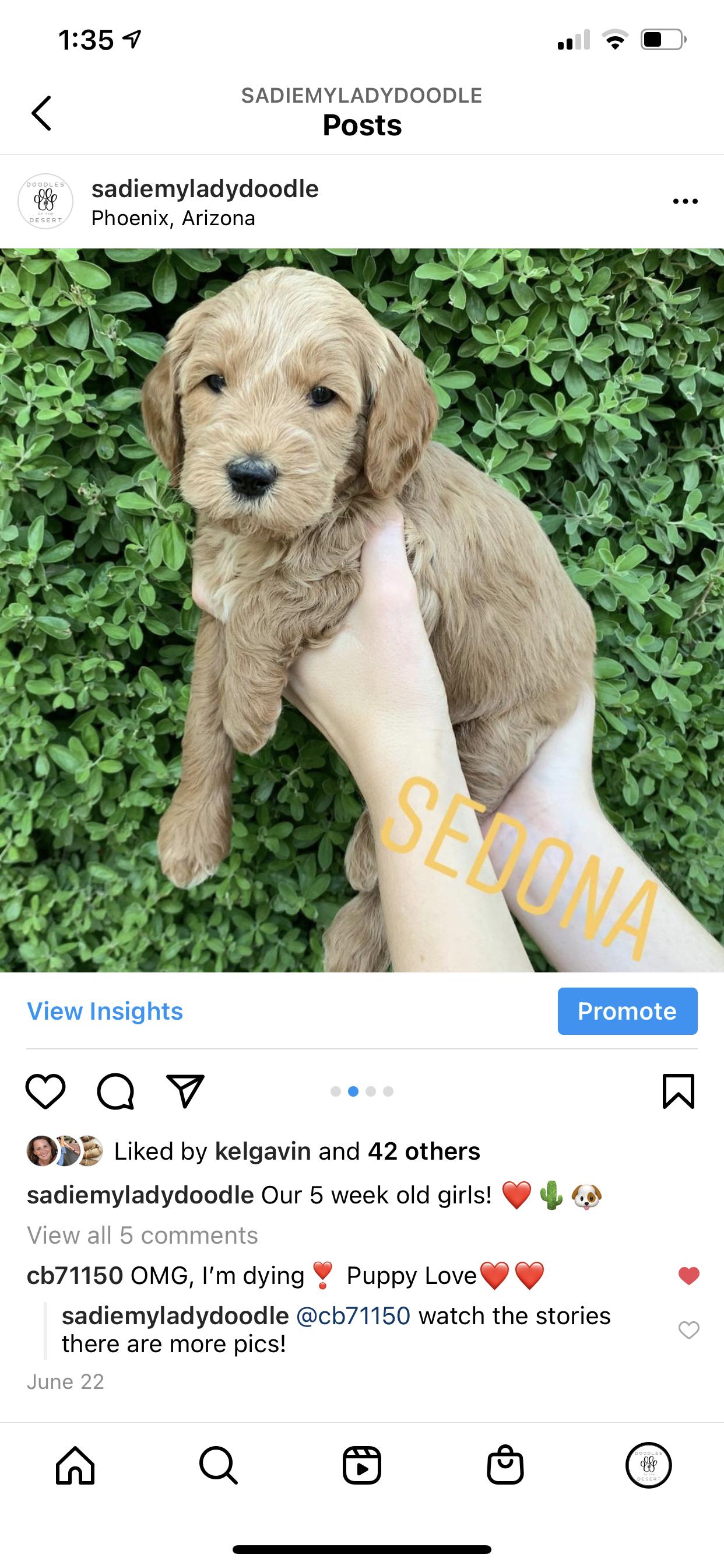 I had a mini golden doodle in the past and wanted another one. I reached out to Sarah, who from the outset, was very knowledgeable and helpful- even though I was still looking and hadn’t made up my mind to get my pup from her. Her selfless help and honesty impressed me so much that I decided to get my new friend from her. Once I put the deposit in, she was thoughtful enough to FaceTime the puppies with me so I could decide which one would be best for me. At last, I went to pick up my little friend. She is already potty trained!! Sarah’s guidance about the first few weeks made sense, and applying those pearls of wisdom have begun to show positive results already. She continues to be accessible for any questions and concerns. I cannot say enough how much I have learned from her and how grateful I am that she was the breeder of my little Carmen!!