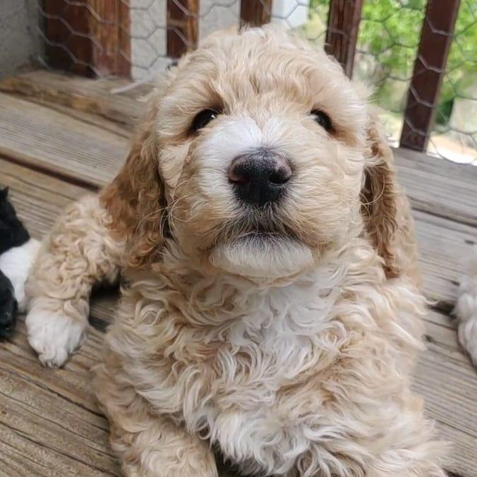 Our Bernedoodle puppies include sable, black and white, and tri-color. Poodle puppies include cream and phantom. Colors will vary depending on the parent dogs.