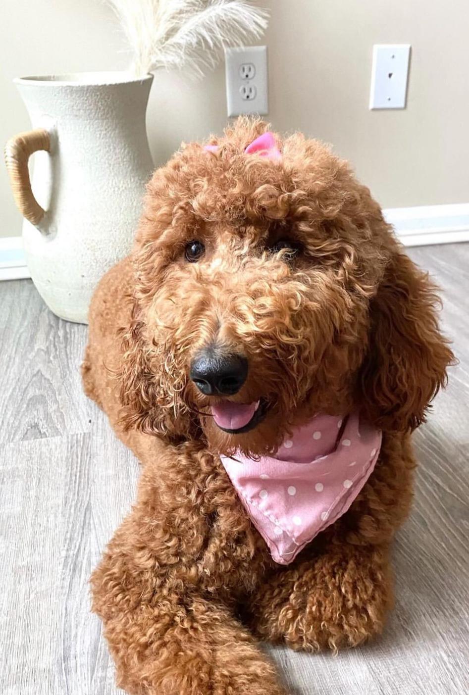 Pennie is a female Goldendoodle. Carefully selected as a great representative of her breed, Darleen decided to make her part of their program. Darleen has passed Good Dog’s screening process, which involved a review of their breeding practices, environment, and the mental and physical health of their dogs.