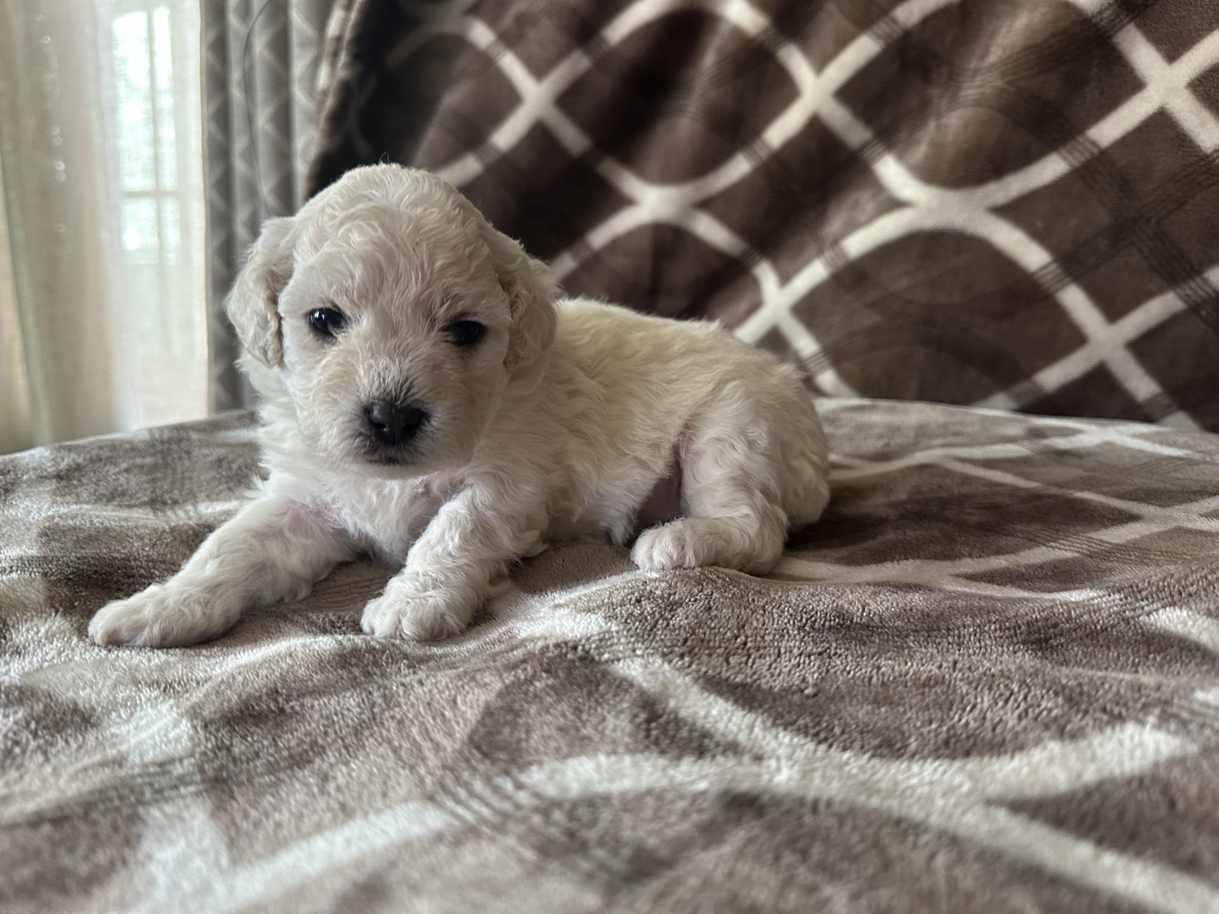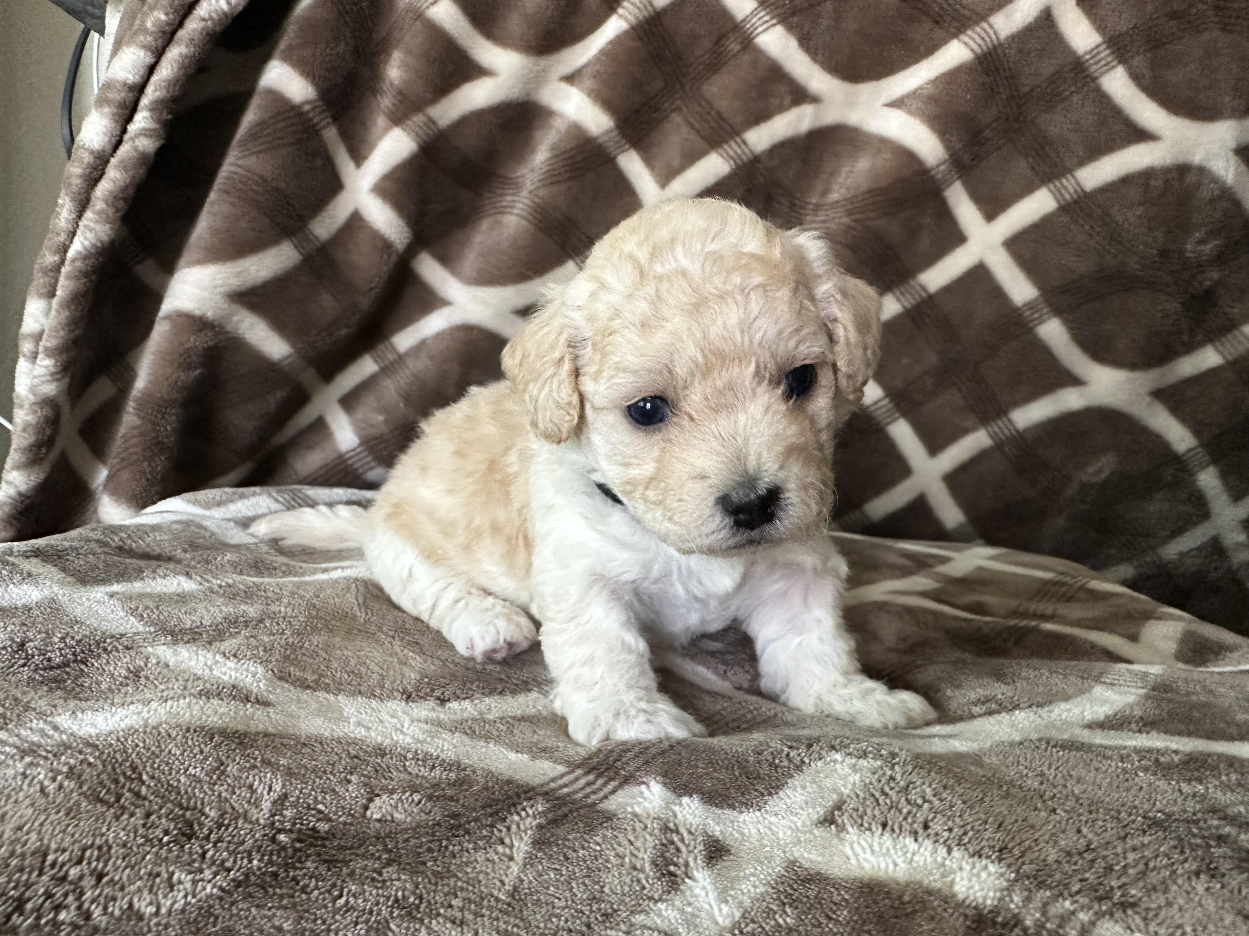 Our Poodle puppies are cream. Goldendoodle puppies are chocolate. Maltipoo puppies are white. Colors will vary depending on the parent dogs.