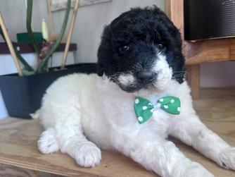 Cockapoo puppies include red, brown and tan, brown, red and white, buff and white, brown and white, and black and white. Bernedoodle puppies include black and white, tri-color, and phantom. Colors will vary depending on the parent dogs.