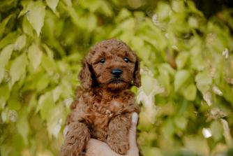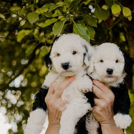 Our Goldendoodle puppies include petite, miniature, and medium sizes. Sheepadoodle puppies include miniature and medium sizes. Sizes will vary depending on the parent dogs.