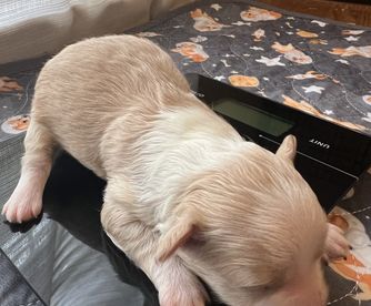 Each puppy is thoughtfully socialized with adults, children, and other animals. They also experience their first grooming session in a nurturing environment, where they are gently handled, brushed daily, and exposed to various grooming tools to ensure a positive experience.