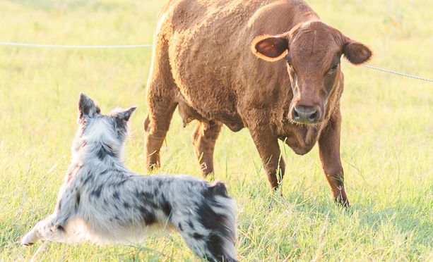 Our girls have shown incredible intelligence with stock, are very biddable, and each has their own "style" with stock. They're both very strong on cattle while one is better with goats and the other is better with pigs. Together, they are a nice complement and nothing escapes their notice. Both are Catty x Cowpuncher pups with clearance by parentage with Good Hips, eyes, and MDR1 non-carrier.