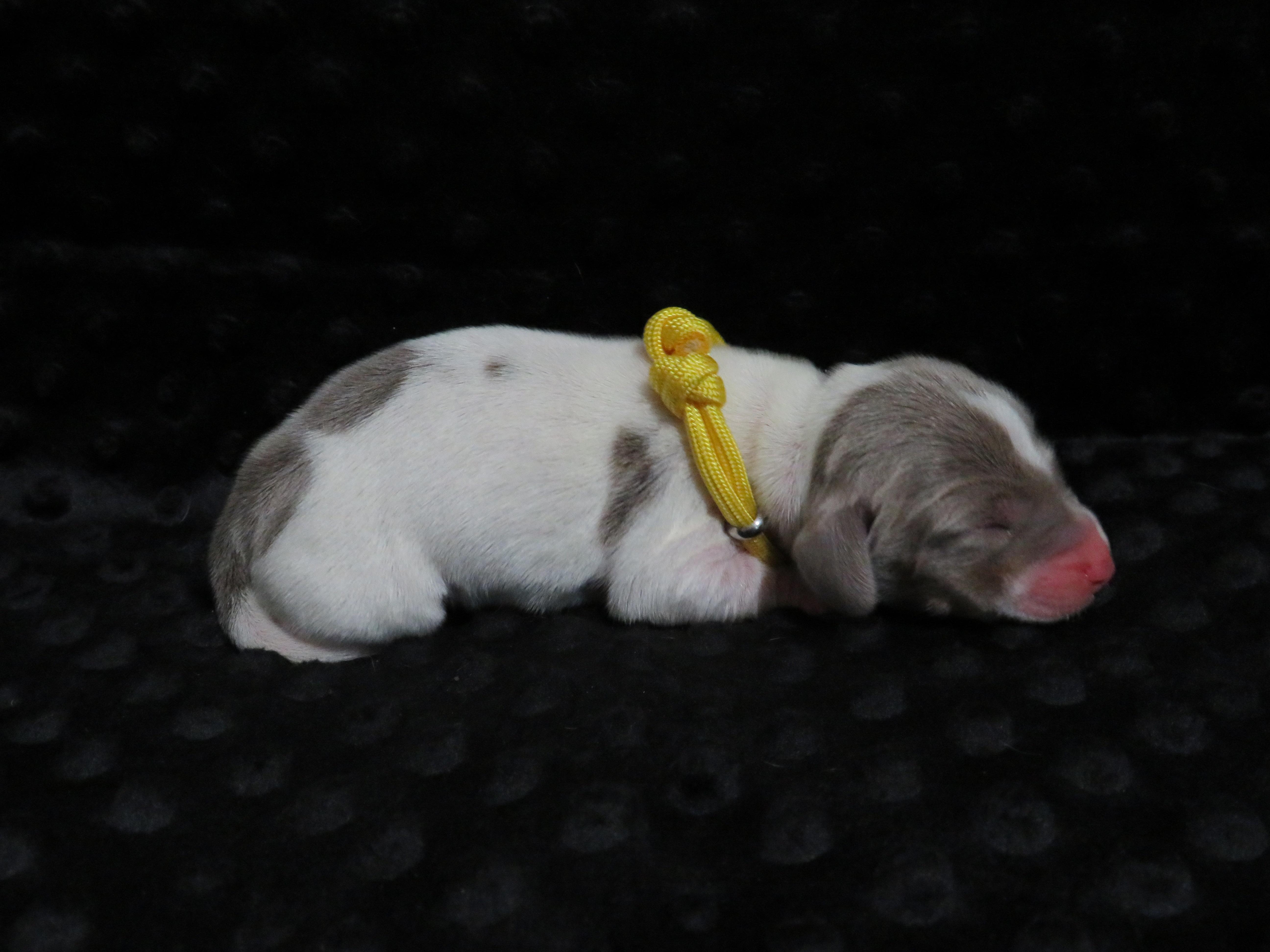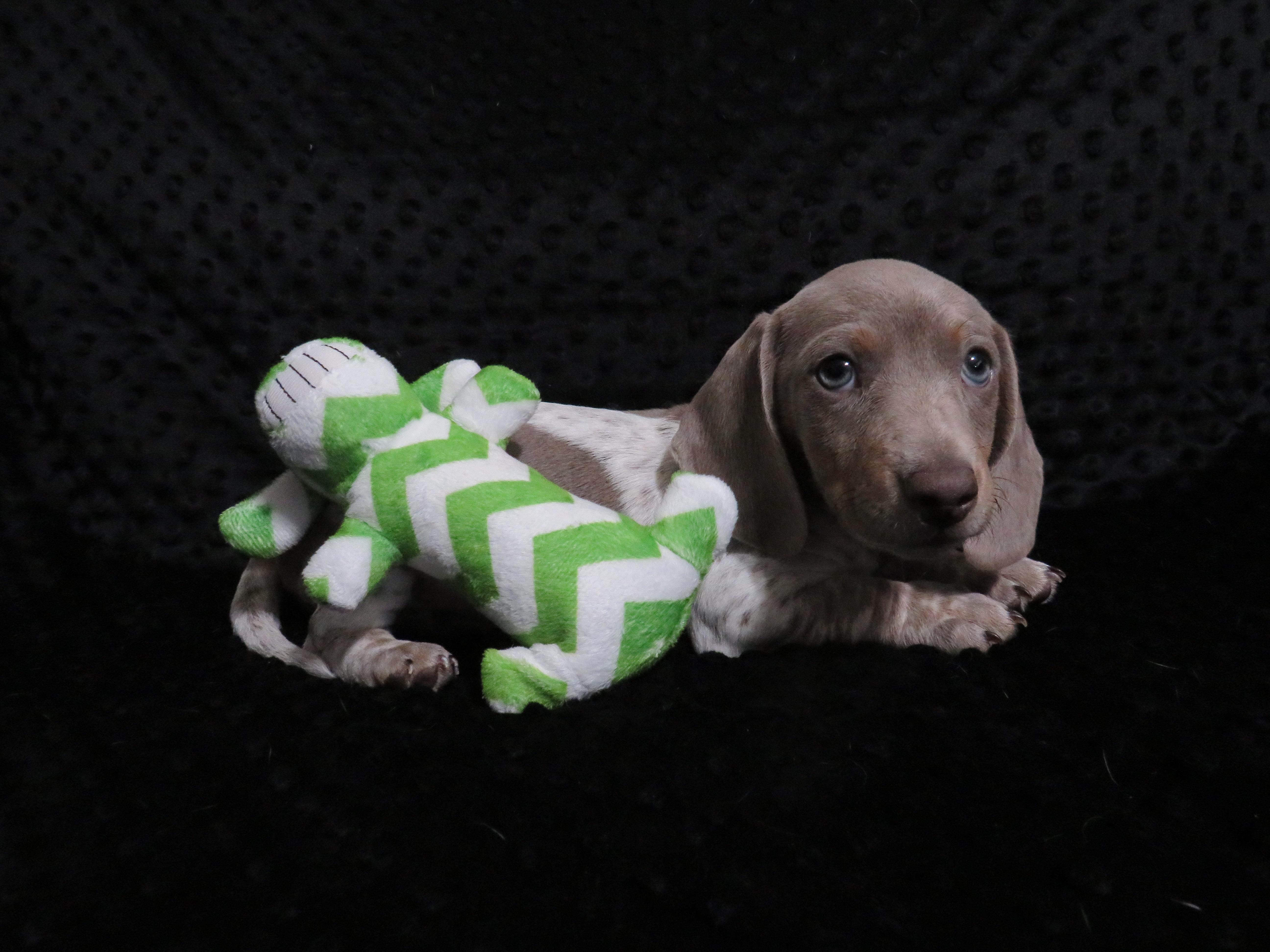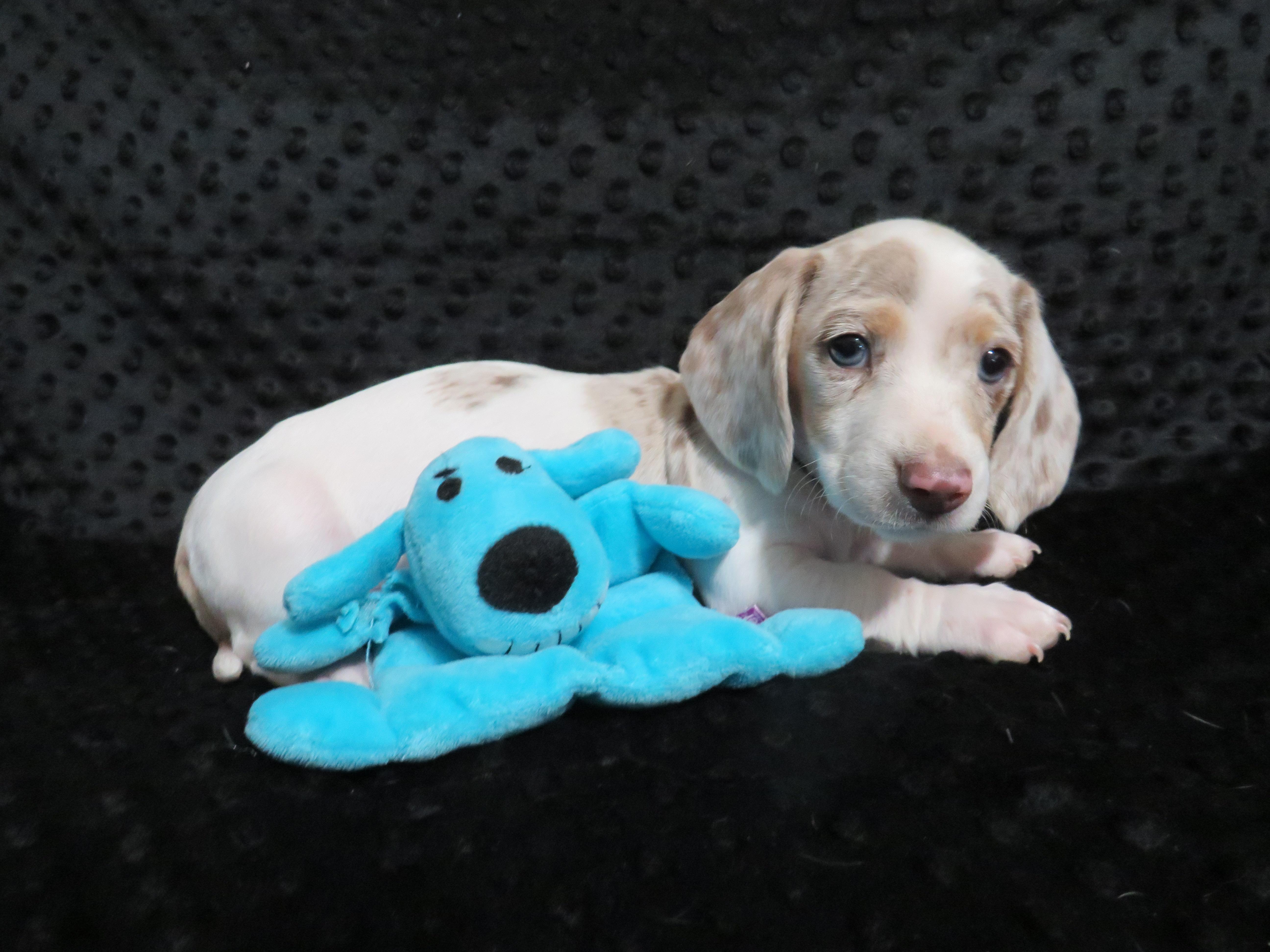 Pistol is our AKC registered longhair blue dapple that carries chocolate and brindle. She is the sweetest girl and has such a playful personality!
