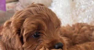 Our puppies are red. Colors will vary depending on the parent dogs.