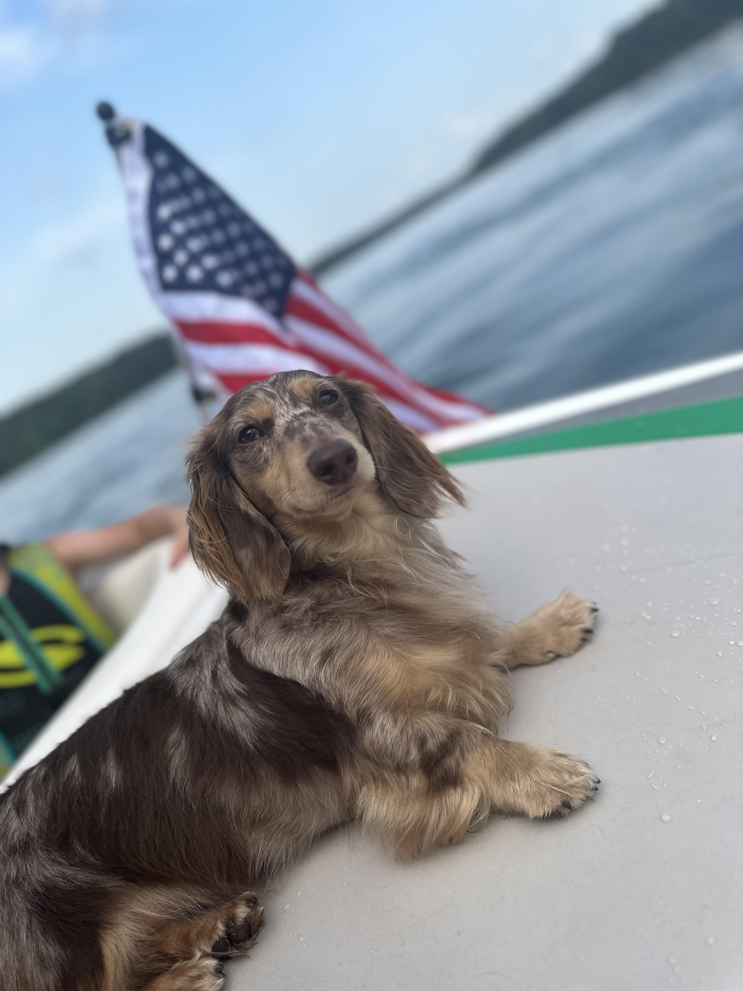 Our commitment doesn’t stop at our front door. My parents are a huge part of our journey as well. My dad, a retired truck driver of 17 years, and my mom help us safely deliver puppies to their new homes, no matter the distance. They also share our love for the breed as they have two of their own—Rudy and Dixie . Dixie is one of our retired moms from Double A Doxies, making this passion truly a family affair.