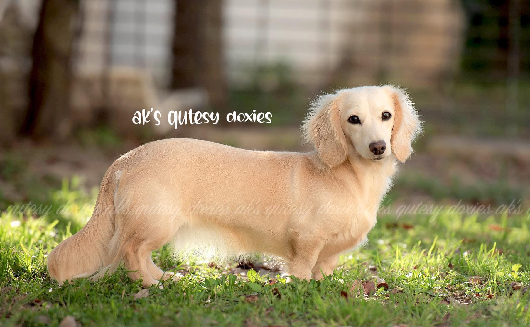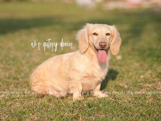 Bianca is a female Dachshund. Carefully selected as a great representative of her breed, Ashlee decided to make her part of their program. Ashlee has passed Good Dog’s screening process, which involved a review of their breeding practices, environment, and the mental and physical health of their dogs.