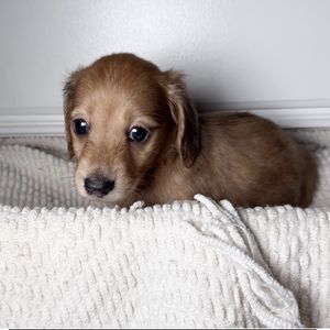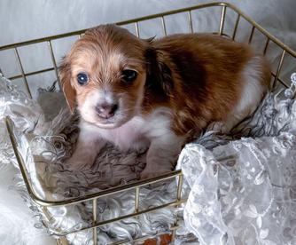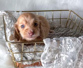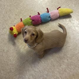 Dudley is a male Dachshund. Carefully selected as a great representative of his breed, Ashlee decided to make him part of their program. Ashlee has passed Good Dog’s screening process, which involved a review of their breeding practices, environment, and the mental and physical health of their dogs.