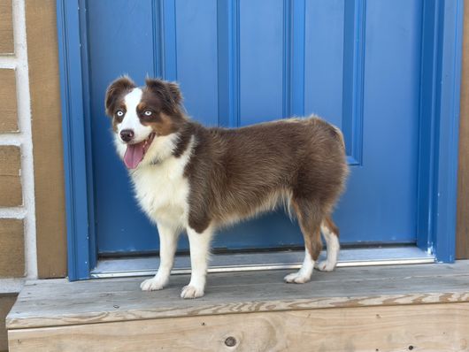 Ruby is a female Miniature American Shepherd. Carefully selected as a great representative of her breed, Blithe decided to make her part of their program. Blithe has passed Good Dog’s screening process, which involved a review of their breeding practices, environment, and the mental and physical health of their dogs.