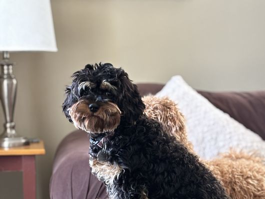 Poppi is a gentle-natured cavapoo. She enjoys morning walks, chasing balls, and cuddles.