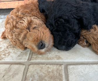 I'm Jeanna J., the breeder behind Double B Doodles located in Lowville, NY. Every puppy we raise is adored as part of our family from birth. Our puppies will complete your home, your family, and your heart! We are a small enough program that we are able to thoroughly focus on each individual dog and puppy and their needs. This is Basil's 4th litter.