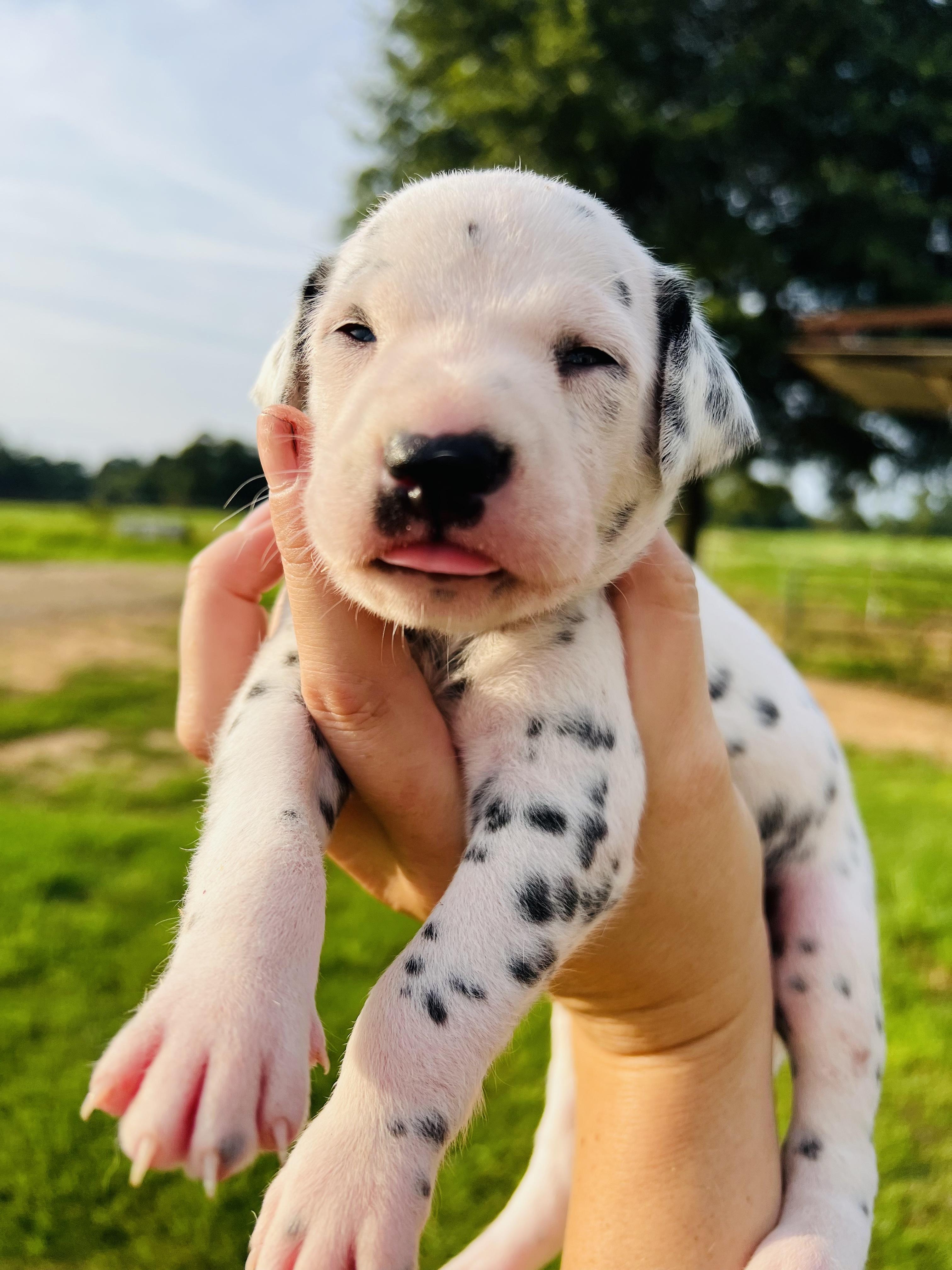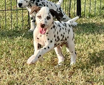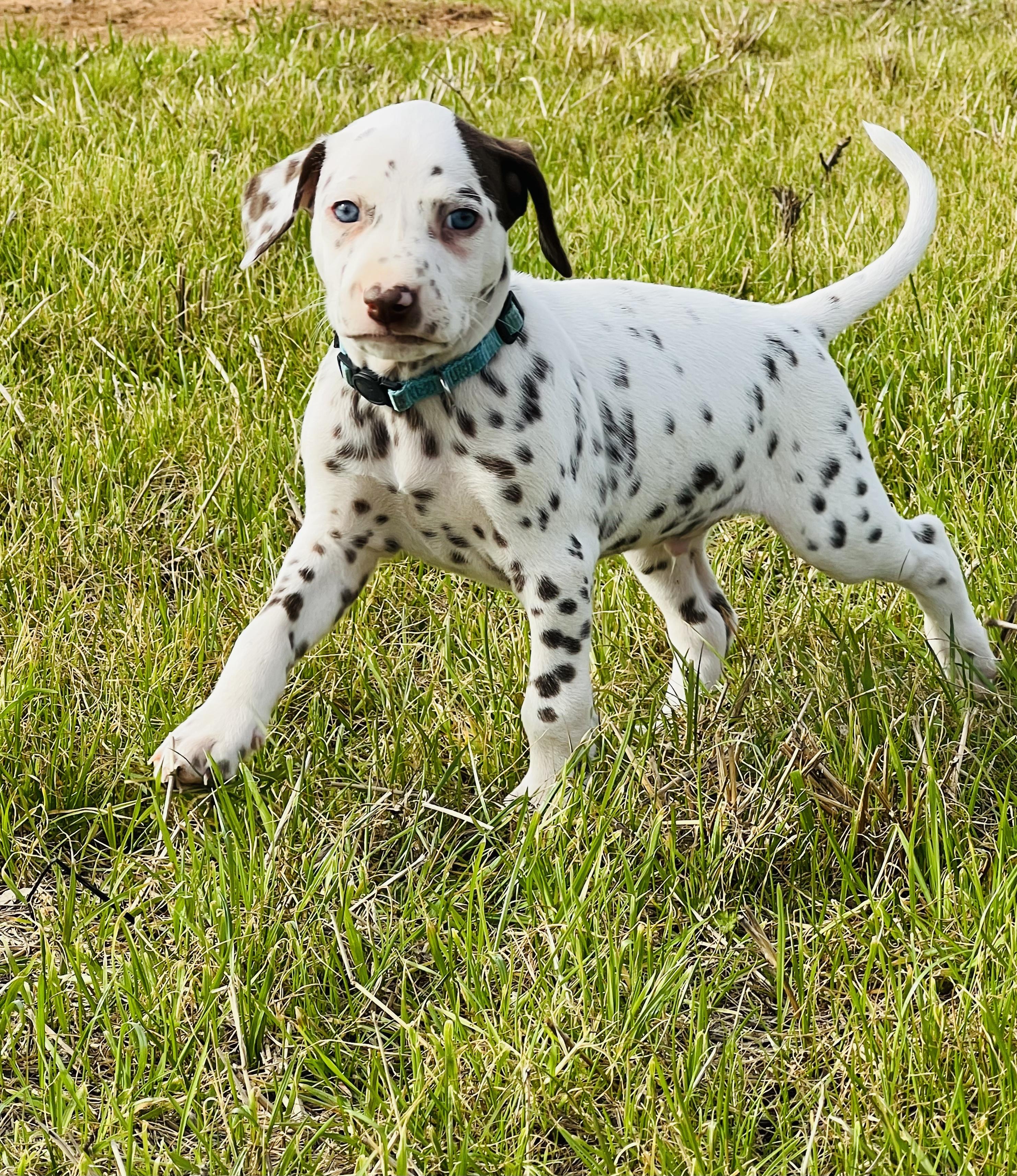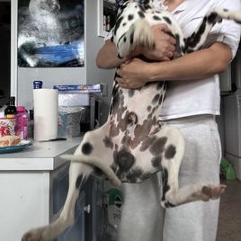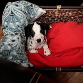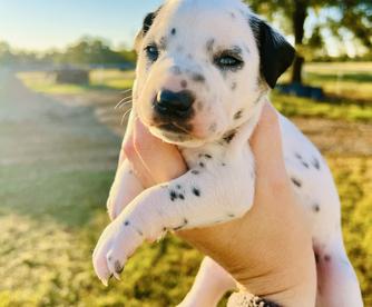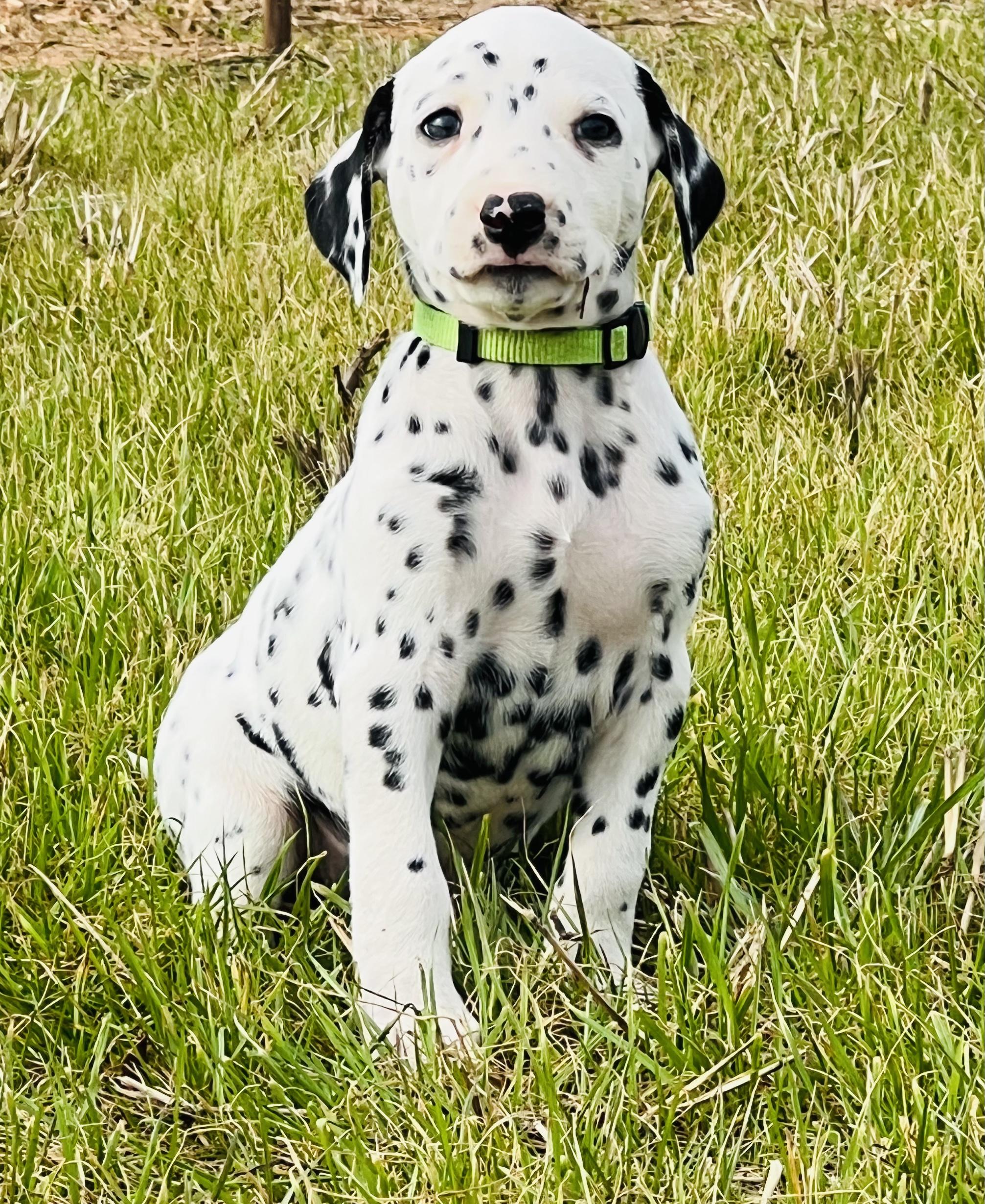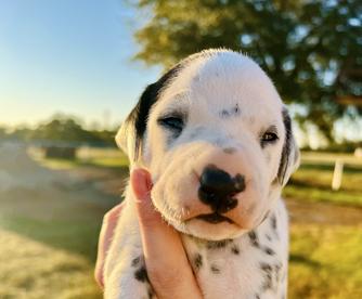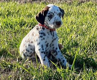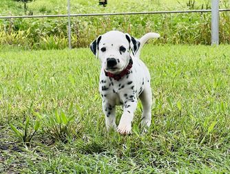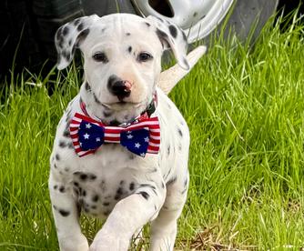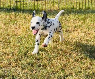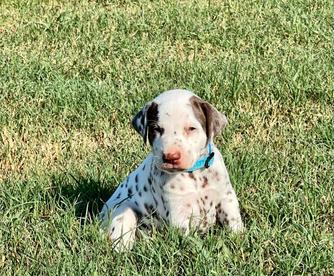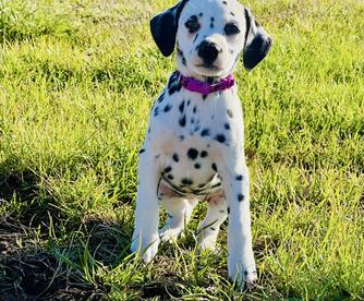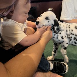 I highly recommend Double B Dalmatians if you are looking for a Dalmatian pup. Jamie was kind, knowledgeable, and quick to respond throughout the entire process. I had a million questions and she answered every single one in detail. Jamie takes great care of her pups so you can be confident that you are getting a healthy and happy new baby. We are loving our new puppy so much. He is loving, cuddly, and loves to play. He is also doing so well with crate training and going potty outside! Thank you so much, Jamie!