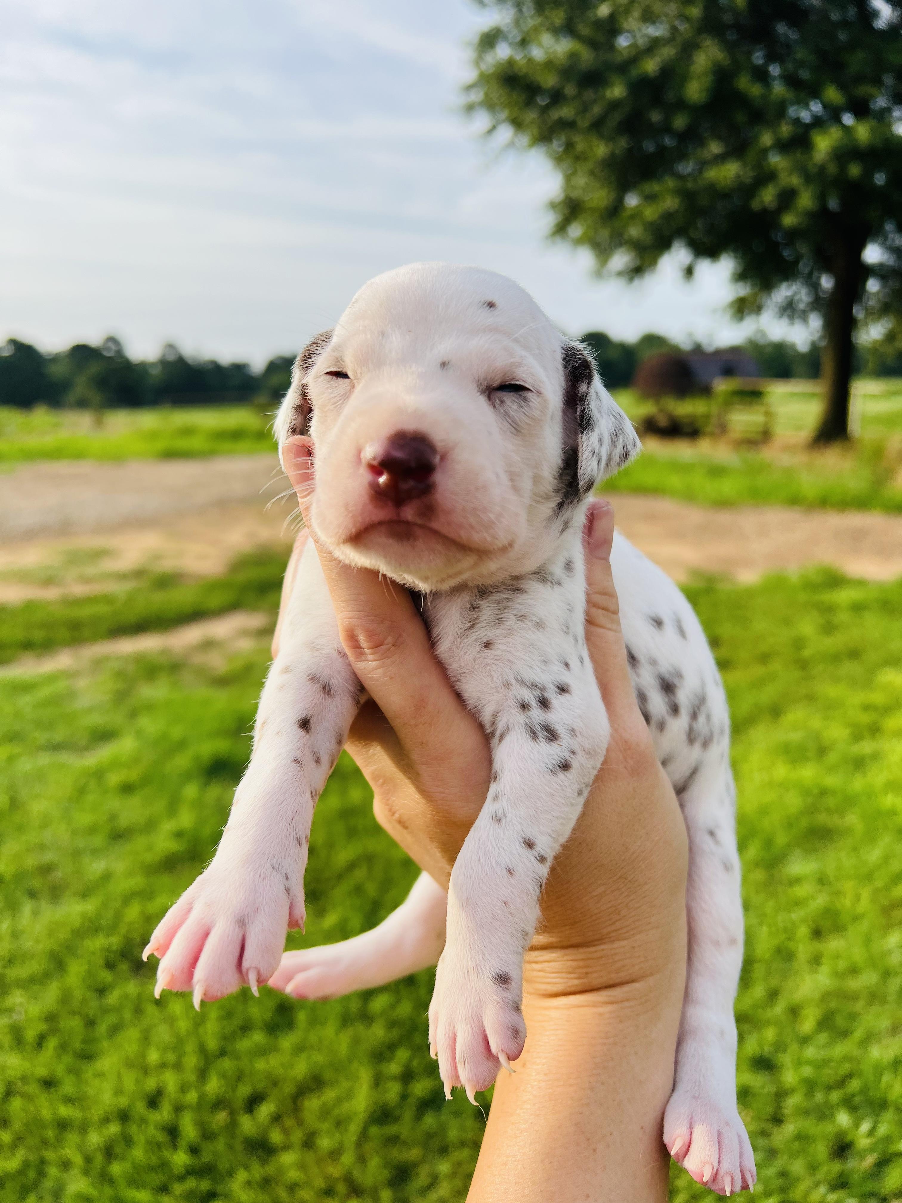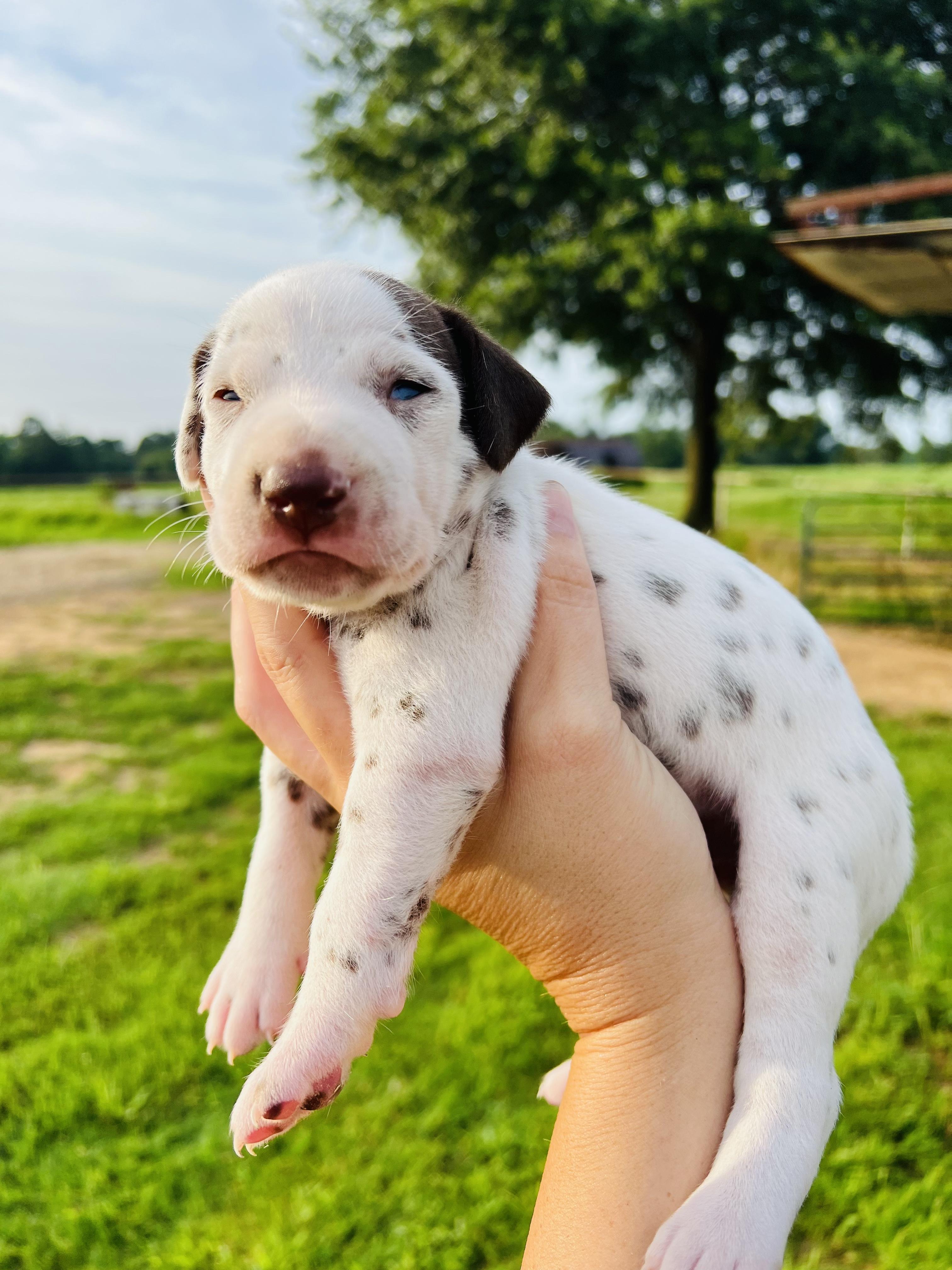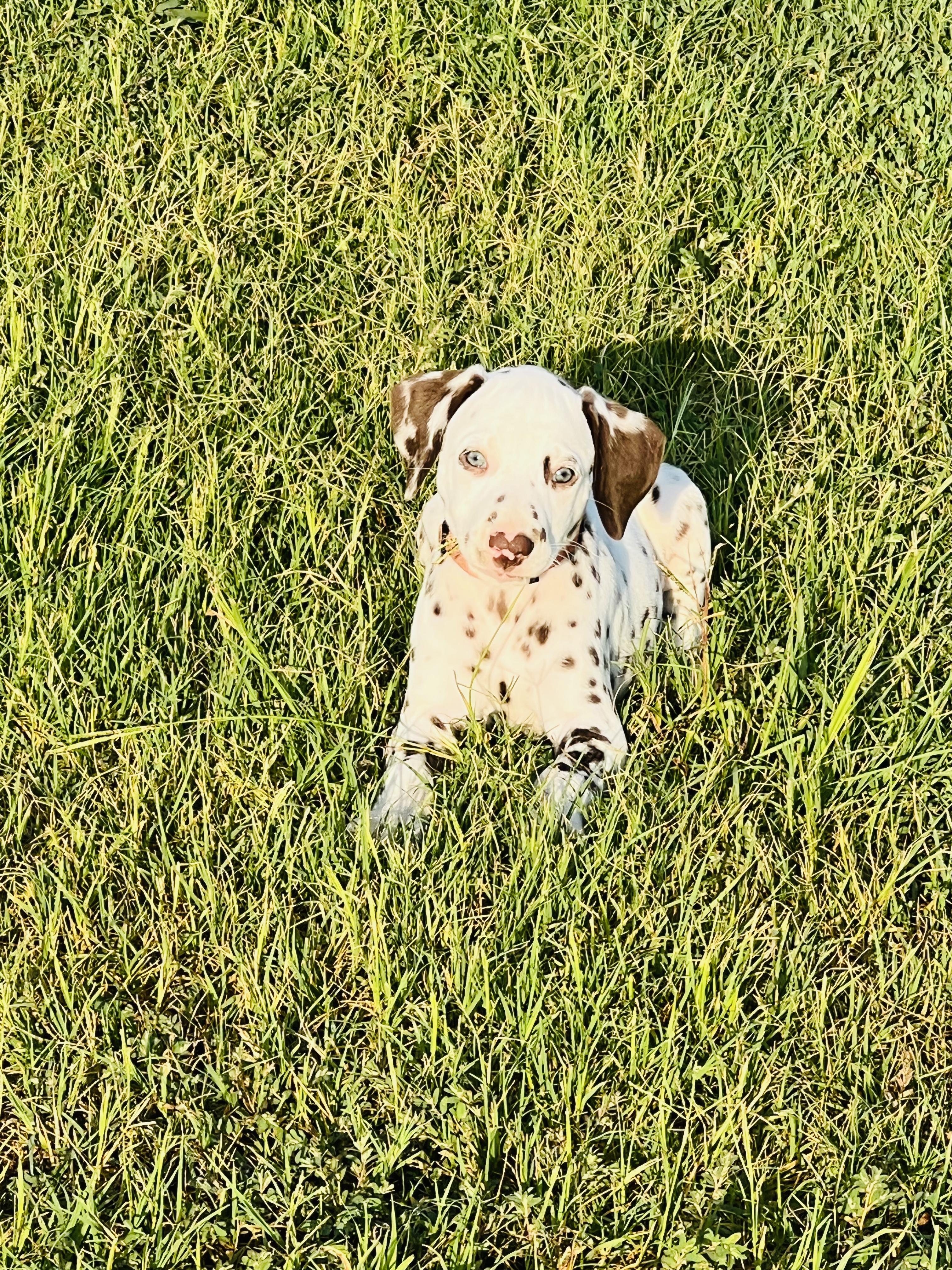 I highly recommend Double B Dalmatians if you are looking for a Dalmatian pup. Jamie was kind, knowledgeable, and quick to respond throughout the entire process. I had a million questions and she answered every single one in detail. Jamie takes great care of her pups so you can be confident that you are getting a healthy and happy new baby. We are loving our new puppy so much. He is loving, cuddly, and loves to play. He is also doing so well with crate training and going potty outside! Thank you so much, Jamie!