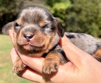 Dachshund puppies are miniature size. Sizes will vary depending on the parent dogs.