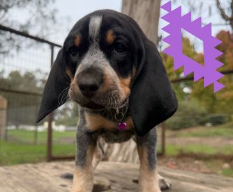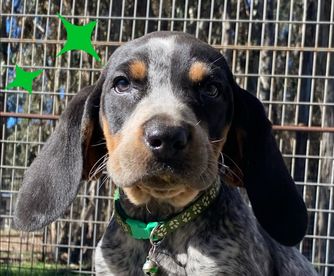 Shady is a female Bluetick Coonhound. Carefully selected as a great representative of her breed, Brittany decided to make her part of their program. Brittany has passed Good Dog’s screening process, which involved a review of their breeding practices, environment, and the mental and physical health of their dogs.