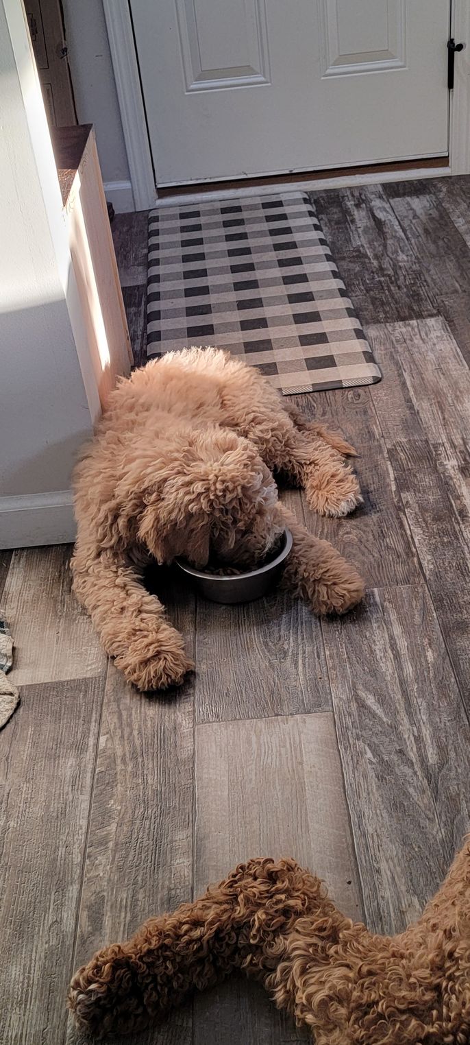 Oakley is an F1bb standard size Goldendoodle 8 months old. We're looking for a good home for her.