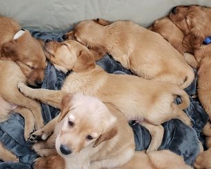 I'm Sarah D., the breeder behind Double D Ranch Golden Retrievers LLC located in Bellevue, MI. We raise dark red Golden Retrievers in our home. Our dogs are healthy and happy and we take great pride in raising wonderful pups! We breed AKC/UKC dark red field Goldens at our home. We health test for hips, elbows, heart, and eyes and run genetics with all our dams and sires. We also have the puppies vet checked and they receive their first shots before they go to their new homes.