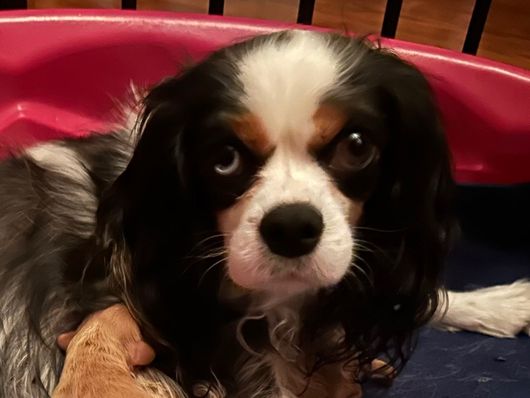 Storie is a female Cavalier King Charles Spaniel. Carefully selected as a great representative of her breed, Stephanie decided to make her part of their program. Stephanie has passed Good Dog’s screening process, which involved a review of their breeding practices, environment, and the mental and physical health of their dogs.
