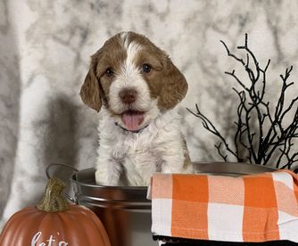 Our puppies include cream, chocolate, and parti. Colors will vary depending on the parent dogs.