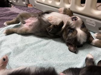 Our puppies include blue merle and black. Colors will vary depending on the parent dogs.