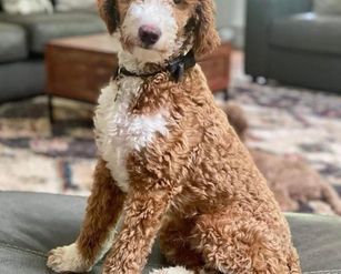 Huck is a male Goldendoodle. Carefully selected as a great representative of his breed, Dale decided to make him part of their program. Dale has passed Good Dog’s screening process, which involved a review of their breeding practices, environment, and the mental and physical health of their dogs.