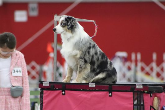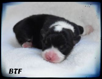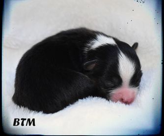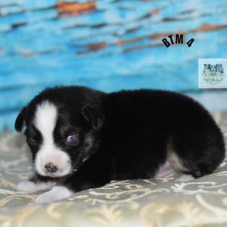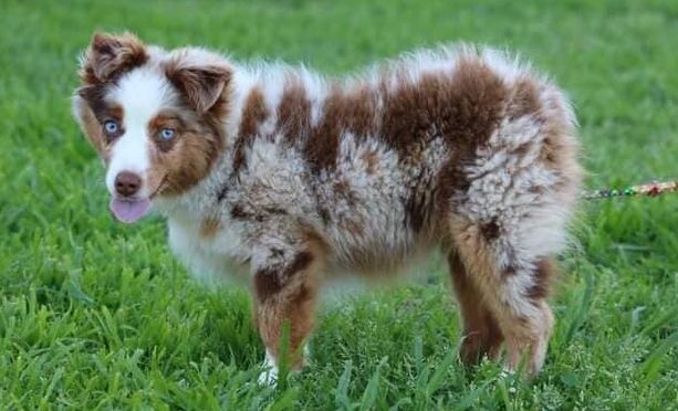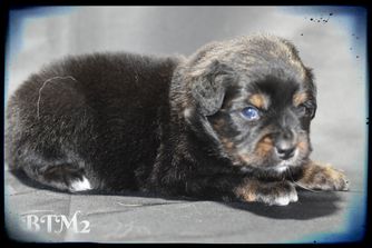 Toby, is so sweet and stands 12” tall. He is a champion red Merle boy and full panel clear. This includes NAD.