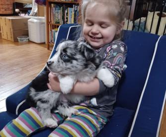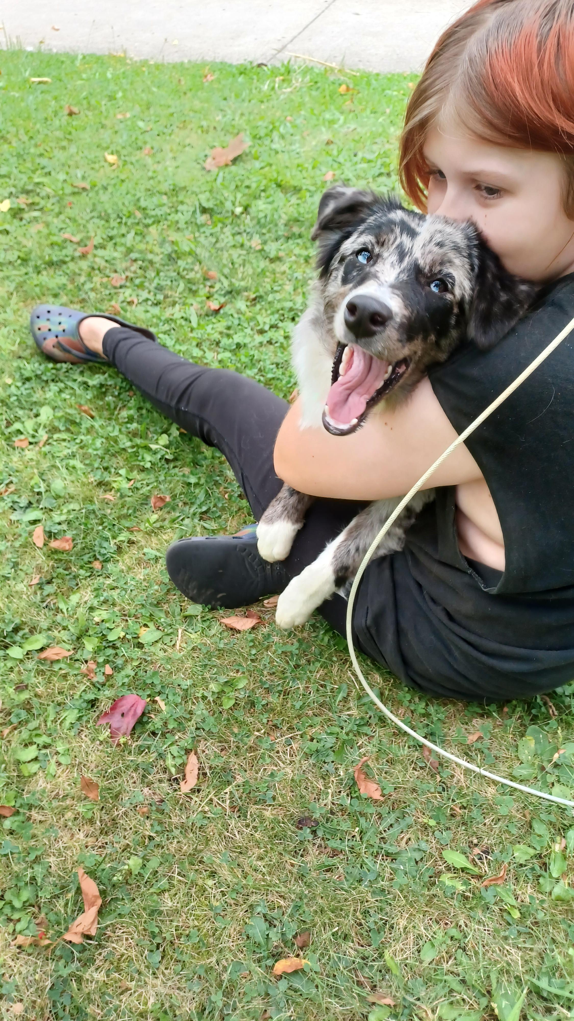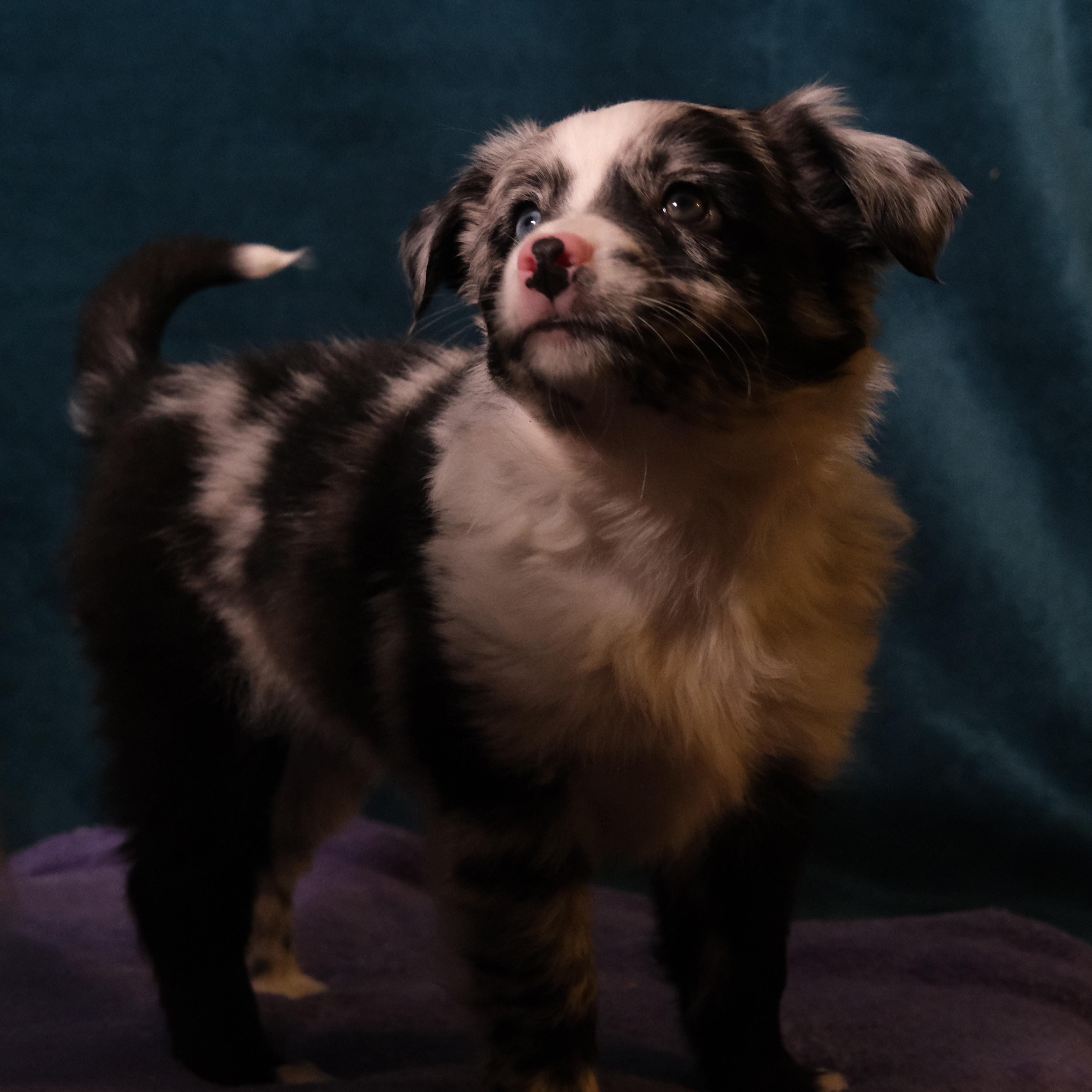 My experience with Double Moon was amazing to say the least. I'm going to be 18 in March (yay an adult) I have many invisible disabilities so I've been researching about service dogs and getting a puppy and the right breed. I have always loved Aussies, my uncle has one and one of my friends dad has an Miniature American Shepherd as a therapy dog. I chose M. Jordan because of both the dam and sire being service dogs and how knowledgeable she was and gave me information which I didn't even know. She helped me learn more about the breed and was with me every step when picking out my service dog prospect, I have my amazing pup currently who was (Gotham) renamed Tiramisu. I've had dogs in the past but she has been the easiest to train so far and I hope we continue to improve together.