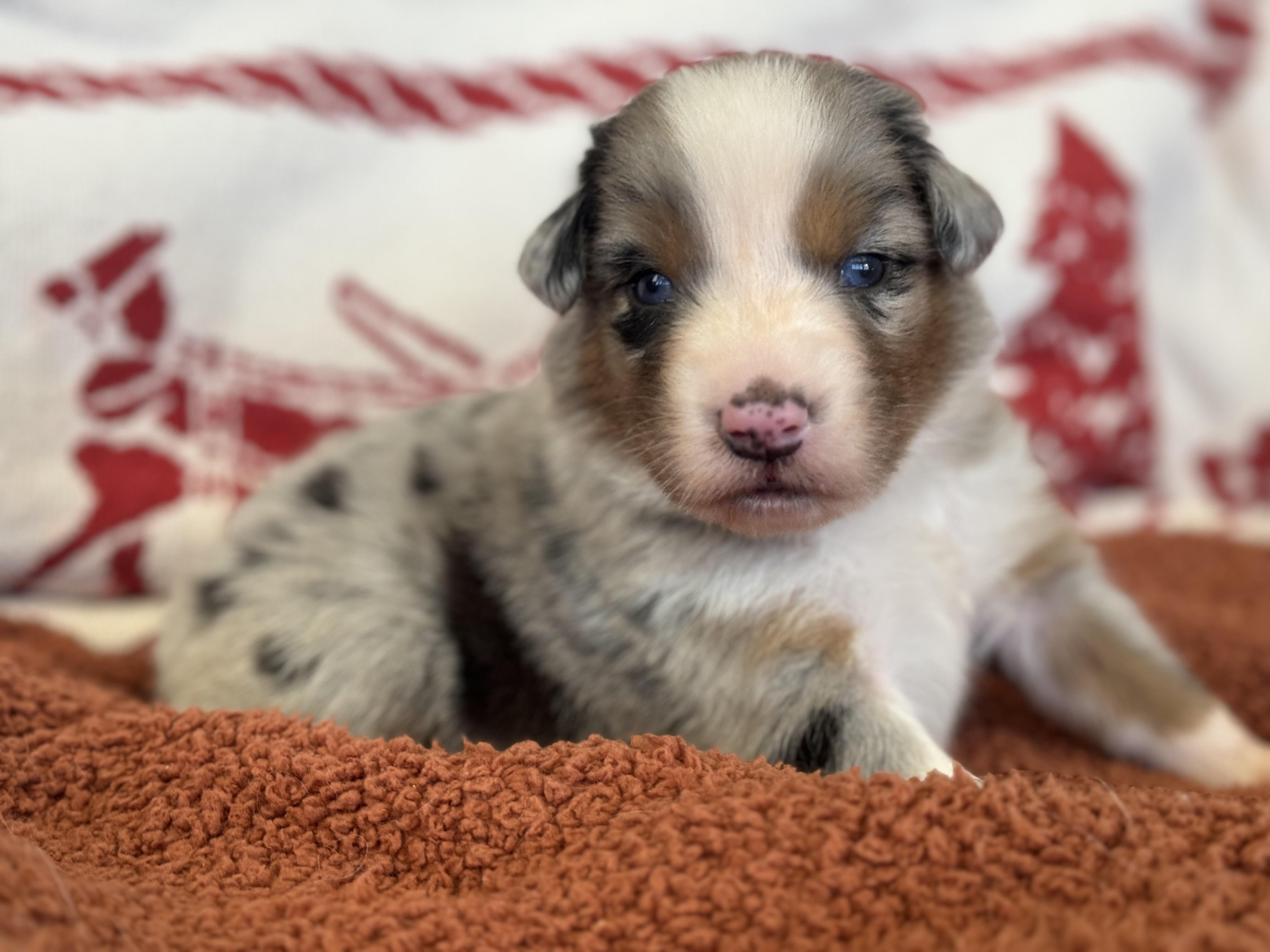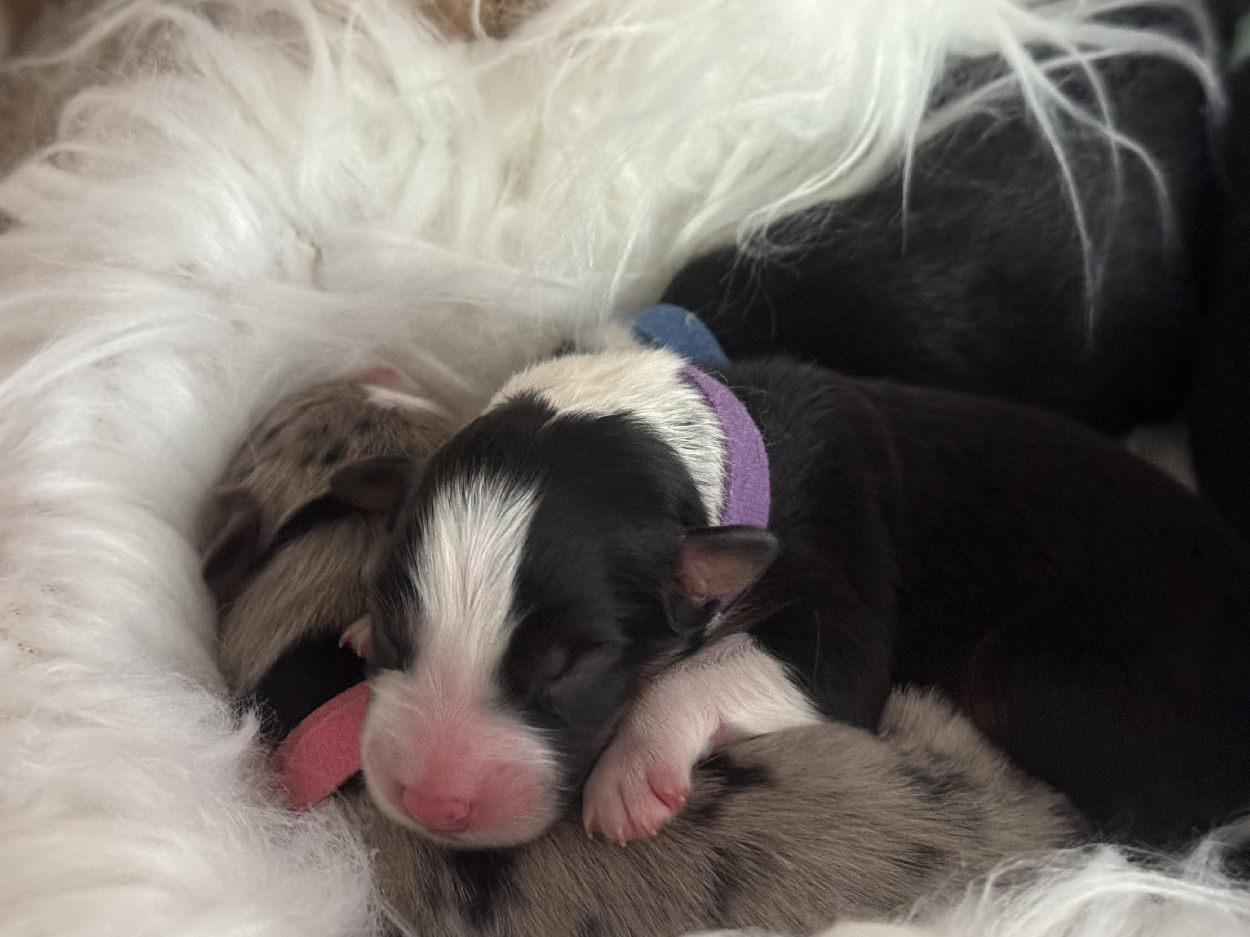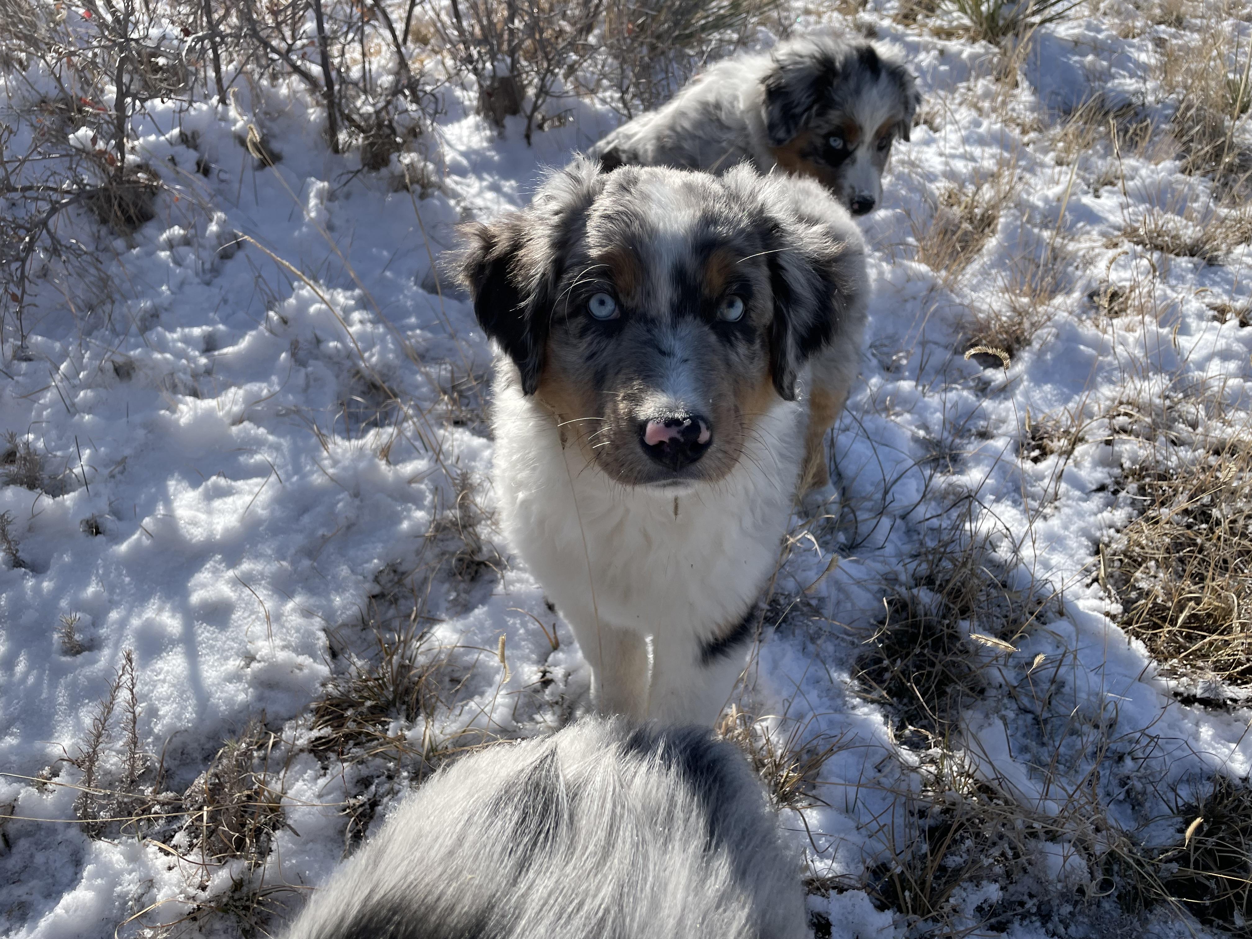 Our puppies include black, red merle, and blue merle. Colors will vary depending on the parent dogs.