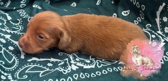 Betty is a female Dachshund. Carefully selected as a great representative of her breed, Shelby decided to make her part of their program. Shelby has passed Good Dog’s screening process, which involved a review of their breeding practices, environment, and the mental and physical health of their dogs.