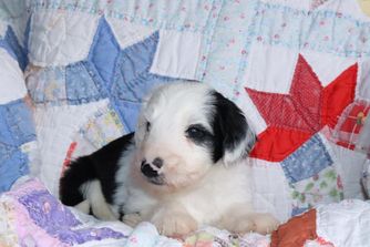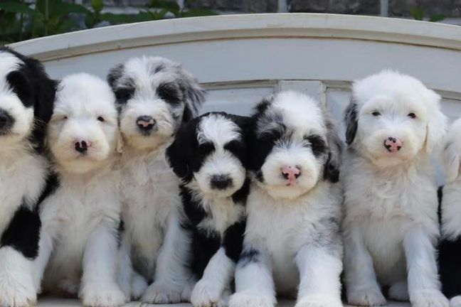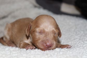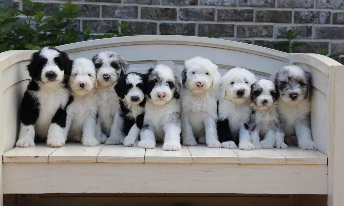 Our Dachshund puppies include red, black and tan, black and cream, and dapple. Sheepadoodle puppies include merle and black and white. Colors will vary depending on the parent dogs.