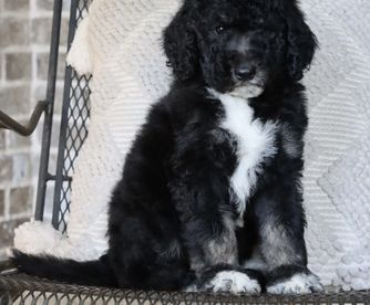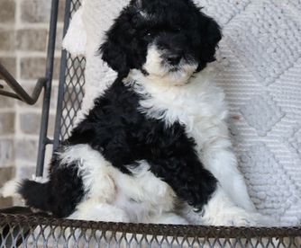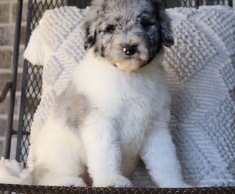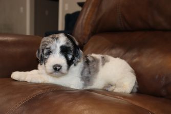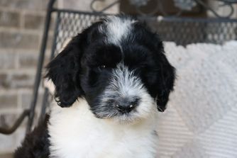 Mamie is a female Sheepadoodle. Carefully selected as a great representative of her breed, Britt & Mary decided to make her part of their program. Britt & Mary has passed Good Dog’s screening process, which involved a review of their breeding practices, environment, and the mental and physical health of their dogs.