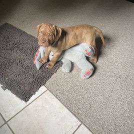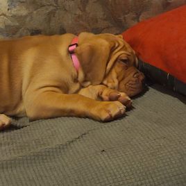 I'm Jennifer D., the breeder behind Doucette’s De Bordeaux located in Corinth, ME. We offer quality Dogue de Bordeaux puppies from our loving home to yours! They are bred for their health, beauty, and temperament. We care deeply about our dogs and puppies, and we do everything we can to ensure they get the best lives possible. That includes everything from choosing healthy parents with good temperaments, to proper socialization and daily care, to placing them in loving homes with wonderful families. We strive to provide each of our puppies and their families with a truly positive experience!